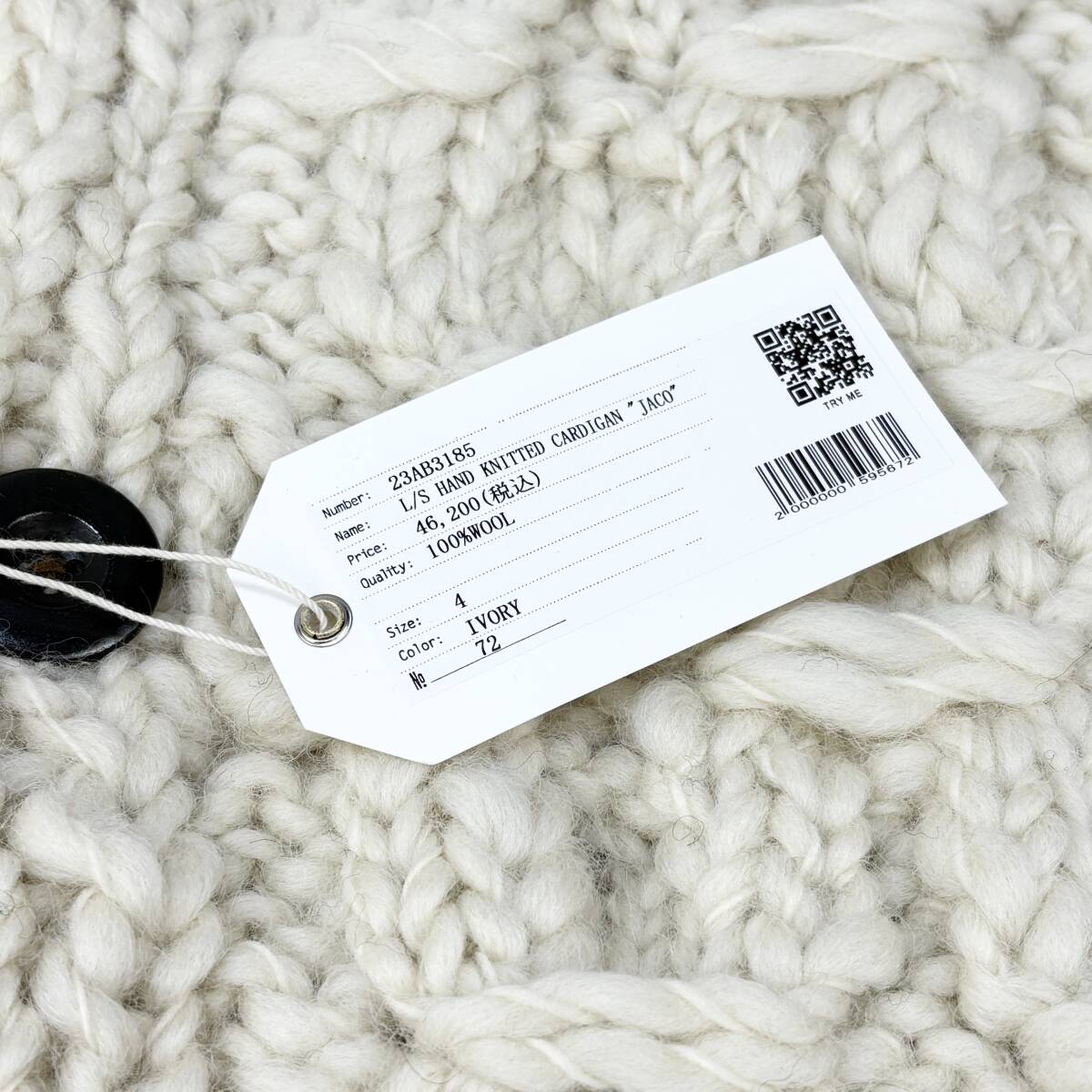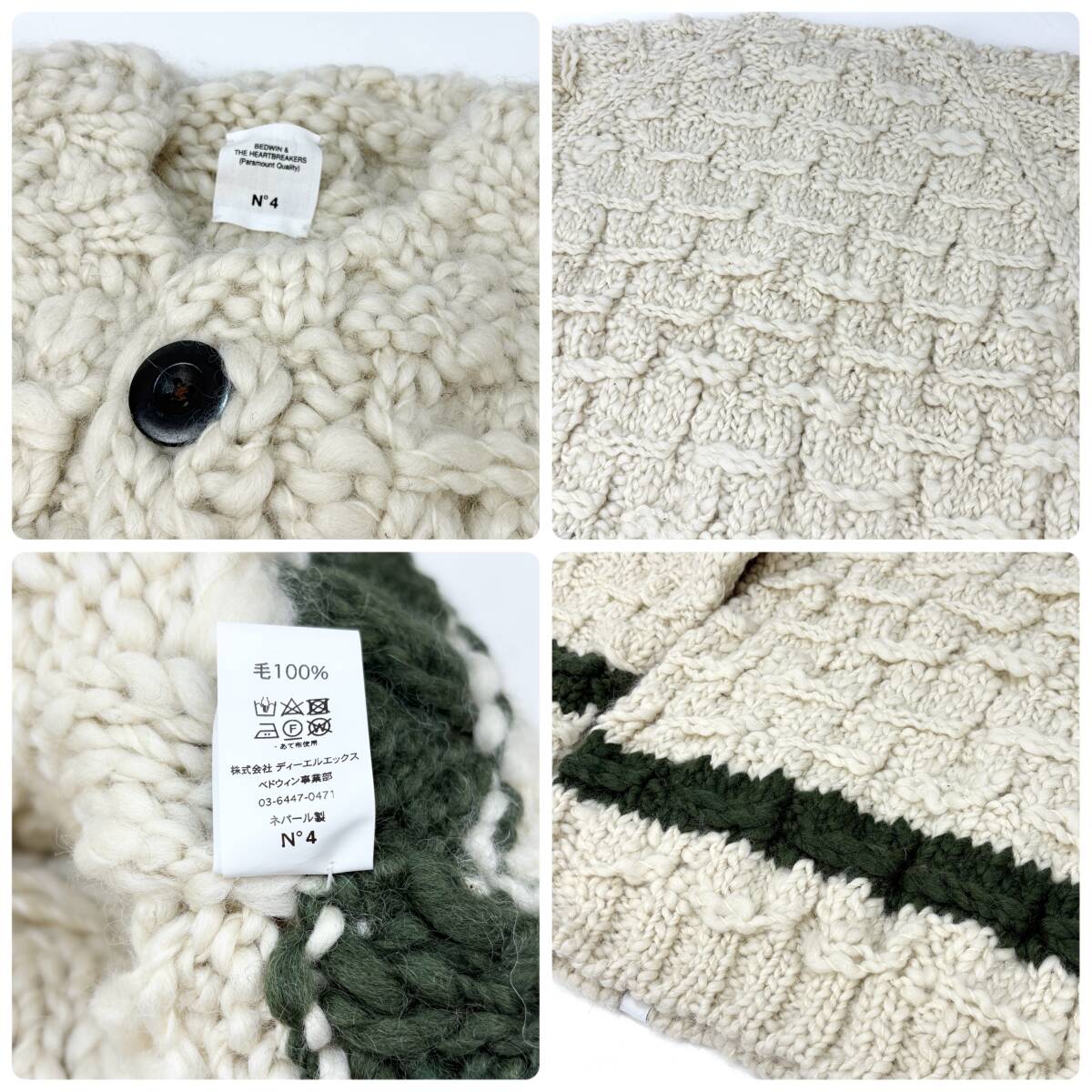 新品 BEDWIN&THE HEARTBREAKERS ベドウィン 23AW L/S HAND KNITTED CARDIGAN JACO ハンドニットカーディガン 23AB3185 アイボリー SSM5099