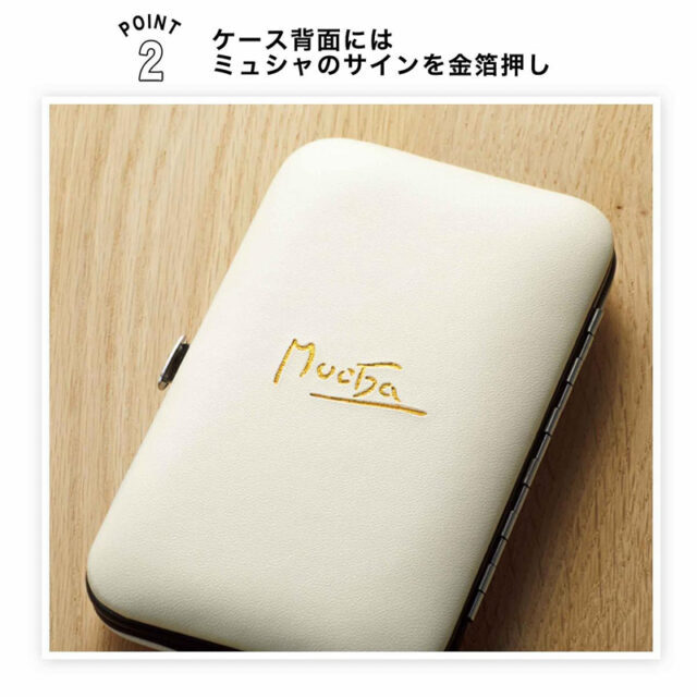 POINT②:ケース背面にはミュシャのサインを金箔押し