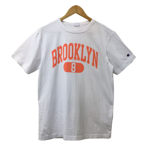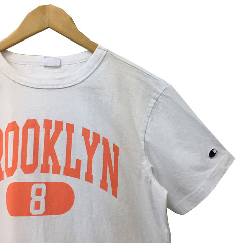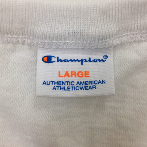 チャンピオン CHAMPION Tシャツ カットソー プルオーバー クルーネック ロゴ プリント 刺繍 半袖 LARGE 白 ピンク ホワイト メンズ