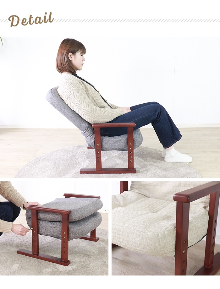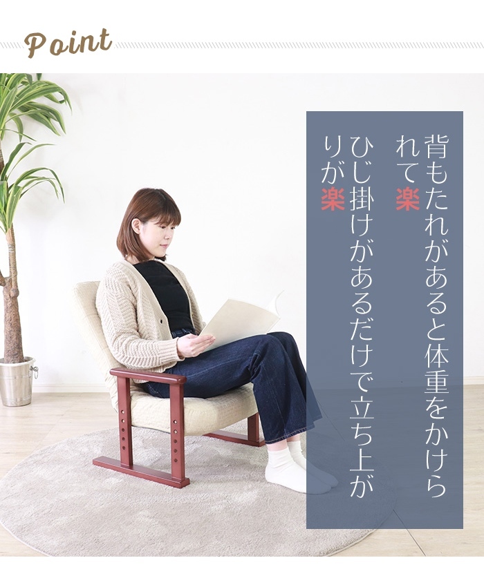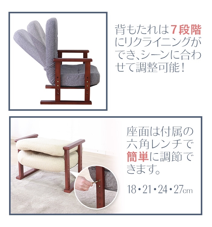 | 高座椅子 リクライニング コンパクト 1人掛け 椅子 チェア イス ローチェア 座椅子 肘掛け付き 低め 木脚 おしゃれ シンプル ソファ ローソファ パーソナルチェア コンパクトチェア 座いす 低い椅子 1人掛け椅子 クッション 背もたれ 折りたたみ可能 省スペース 高さ調整 和モダン ナチュラル 和室 |