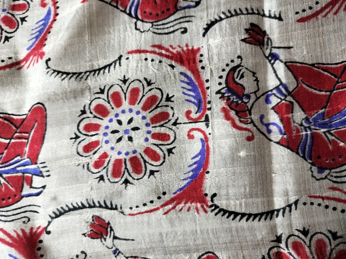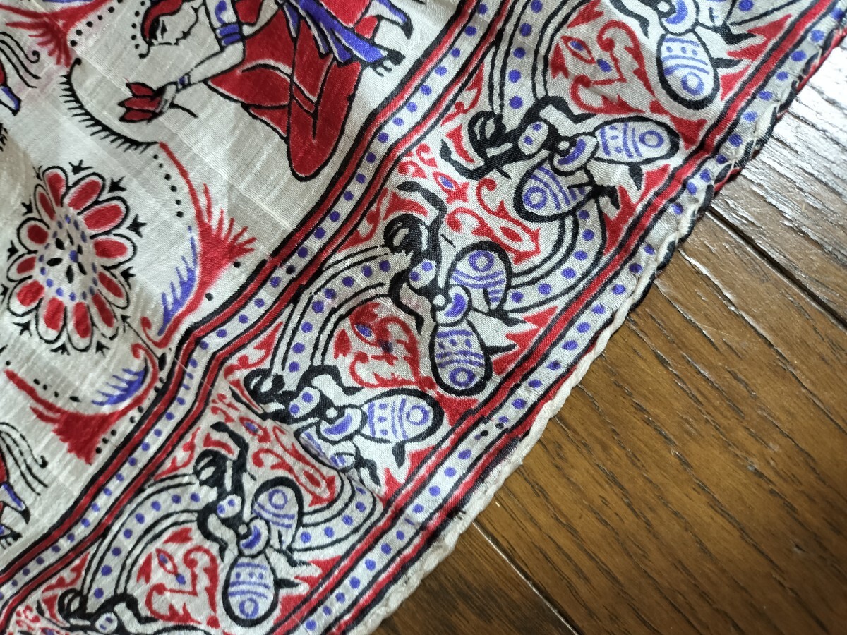 インドの伝統的な柄で、エキゾチックな雰囲気が魅力的です。希少なヴィンテージ品のため、同じものは二つとありません。人とは違う、あなただけの個性を演出できる特別なアイテムです。