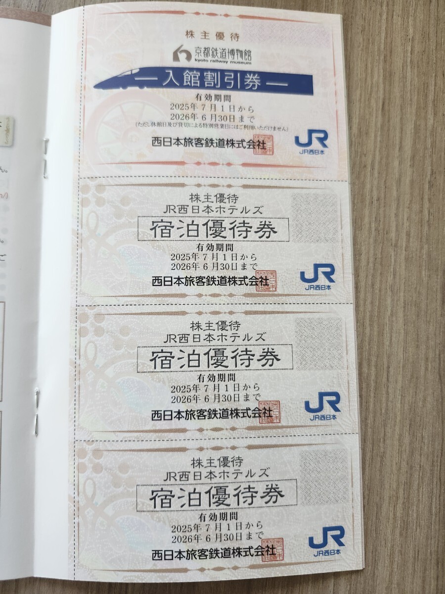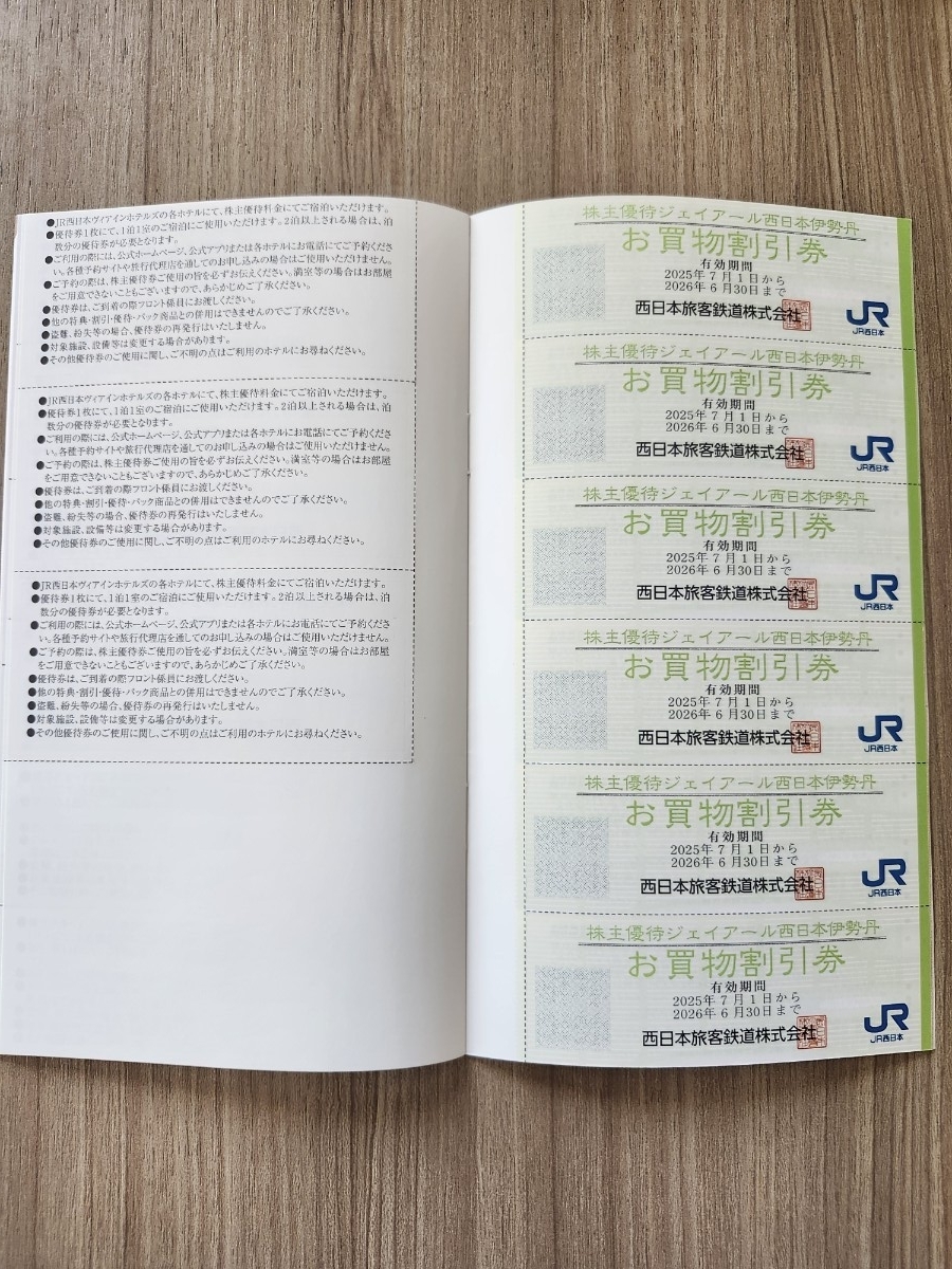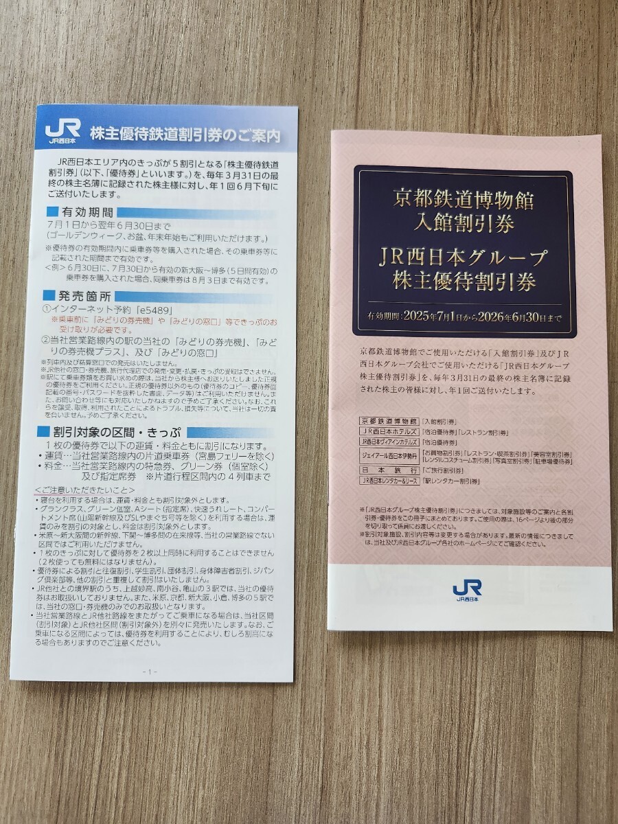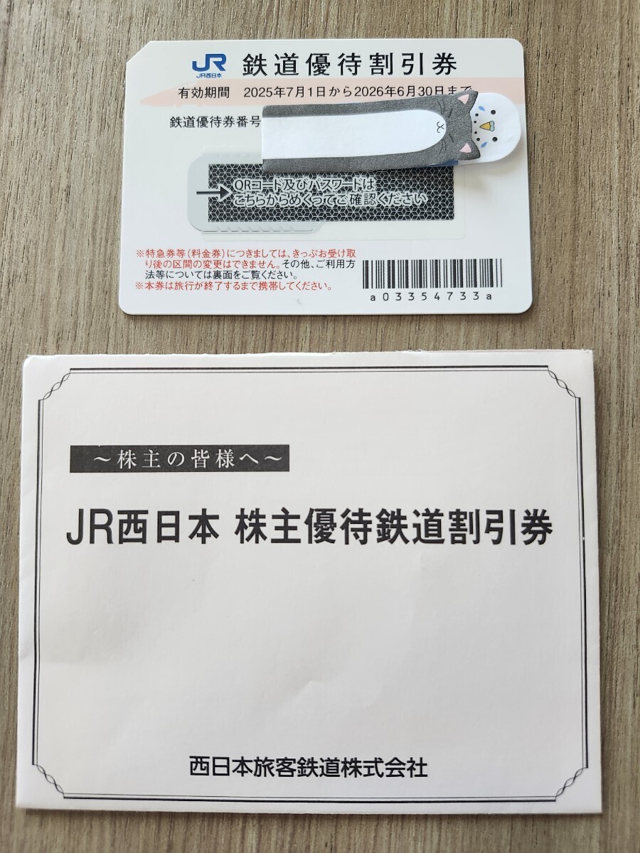 JR鉄道株主優待割引券1枚と優待割引券冊子1冊です。
