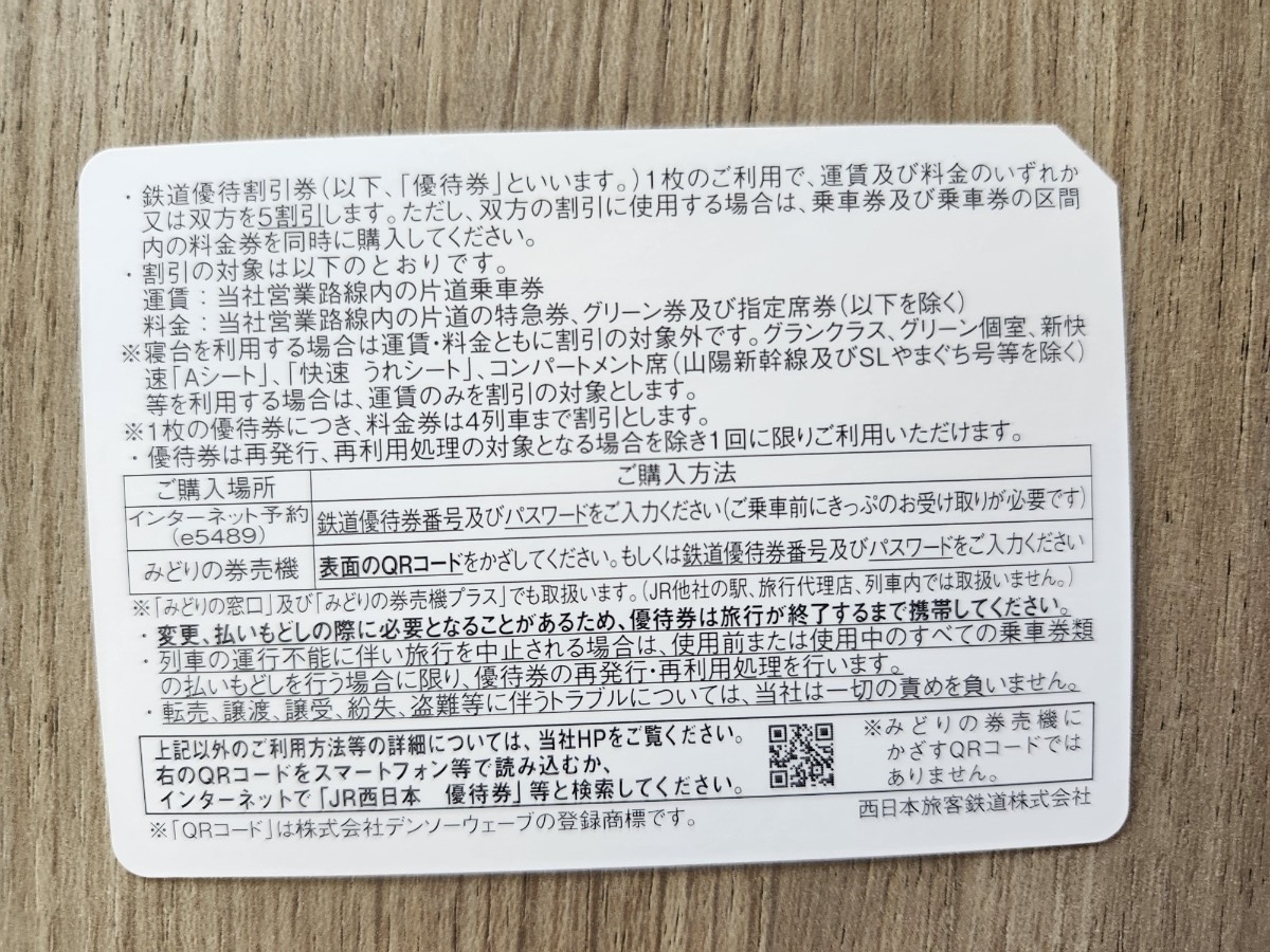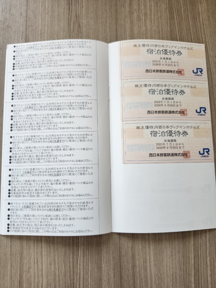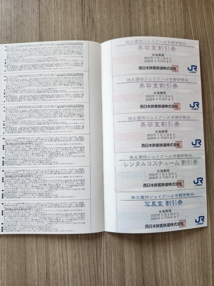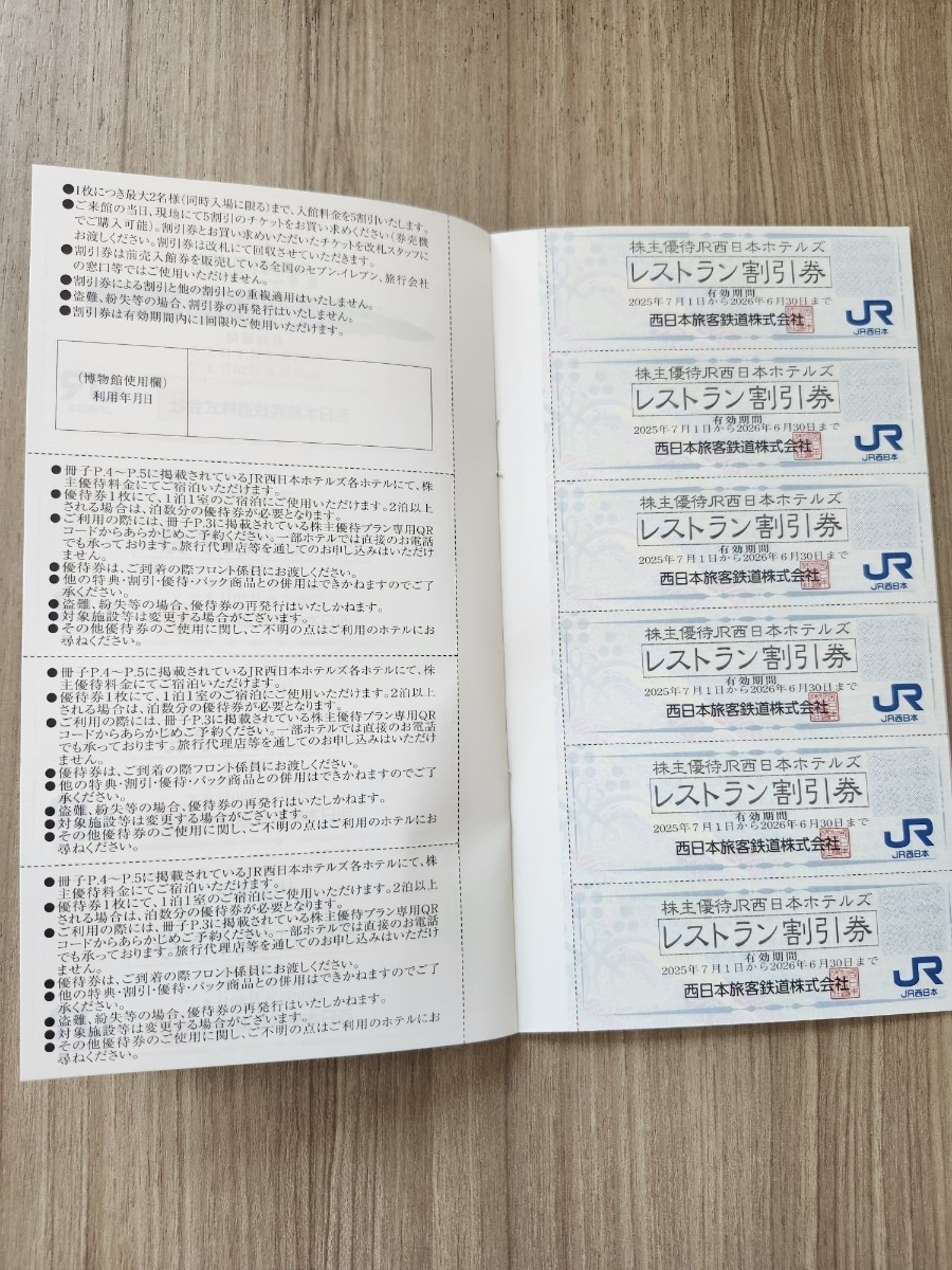 JR鉄道株主優待割引券1枚と優待割引券冊子1冊です。
