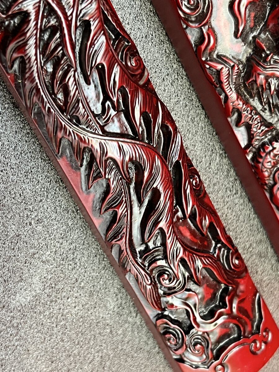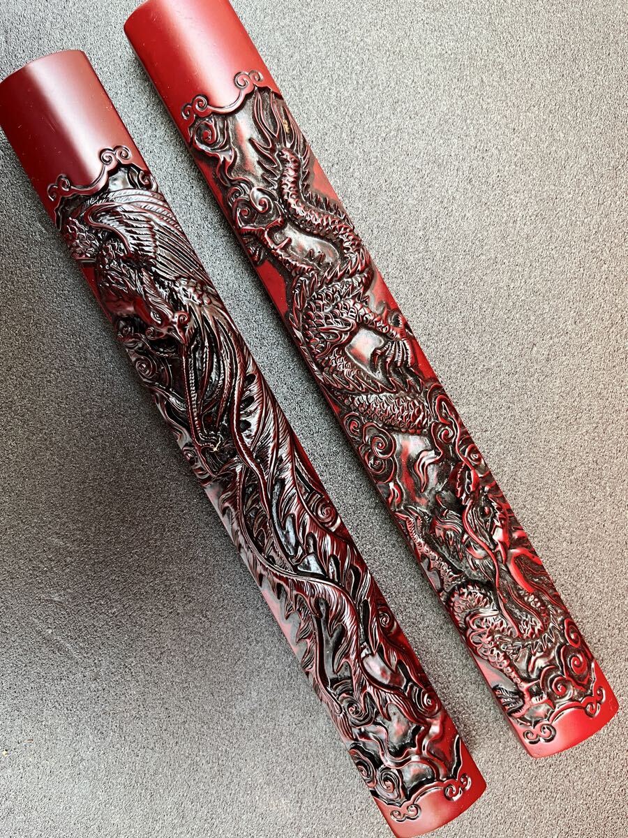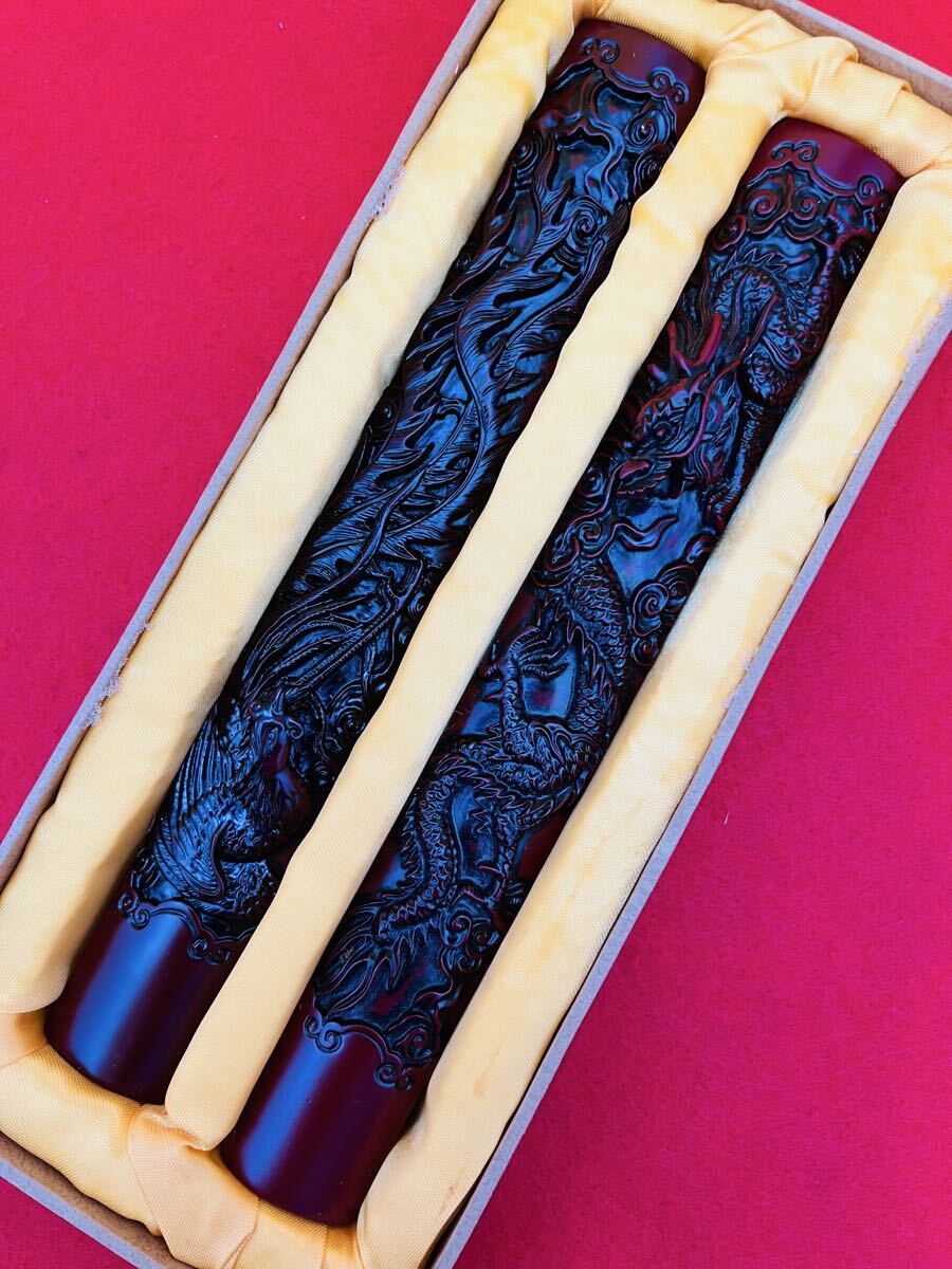 黒檀文鎮 鳳凰 龍 書道具 文鎮 中国製 工芸品 美術品 アンティーク RYSING 日升精品 縁起物 彫刻