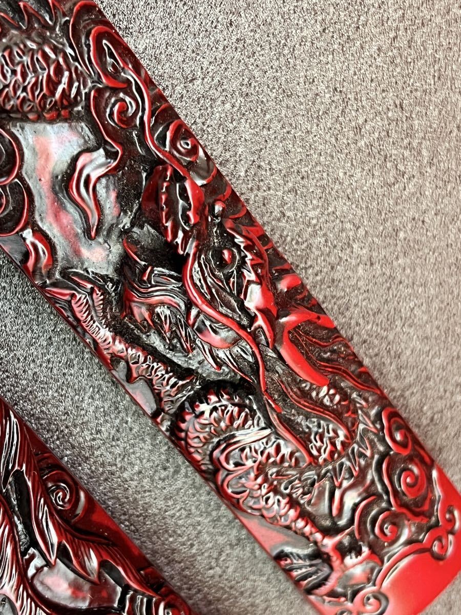 黒檀製の文鎮(ぶんちん)で、龍と鳳凰の彫刻が施されています。