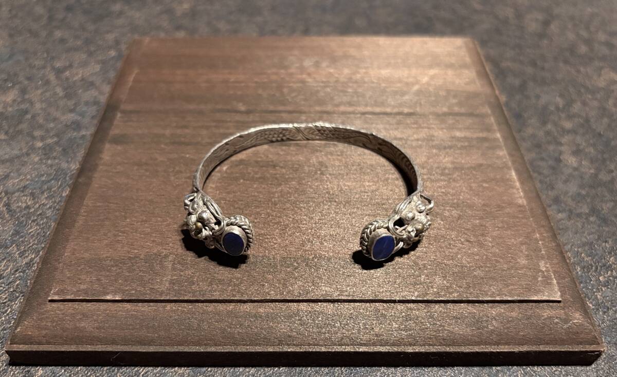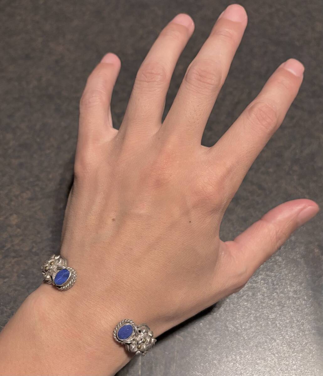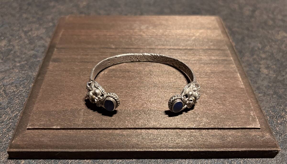 1希少アンティーク銀シルバー製バングルS~Mドラゴン龍/竜モチーフ頭ラピス青ラズリ石デッドストック年代ビンテージ物ユニセックス男女兼用