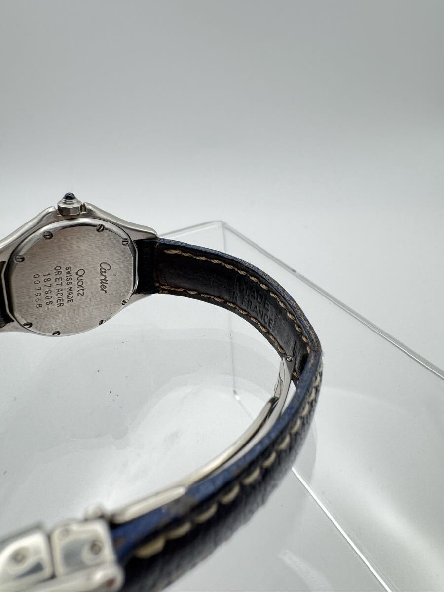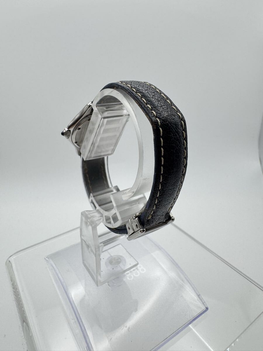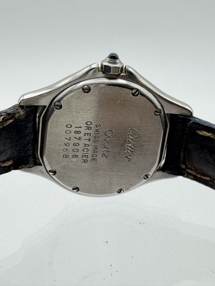 本モデルは 1970〜90年代に展開された「マスト ドゥ カルティエ」シリーズのヴィンテージ品。当時のカルティエらしいクラシックなデザインが味わえる一本です。ムーブメントはクォーツで、現状稼働中。ケースバックには「Cartier Quartz Swiss Made」の刻印あり。シンプルながら高級感を漂わせる存在感は、フォーマルから普段使いまで幅広く活躍します。