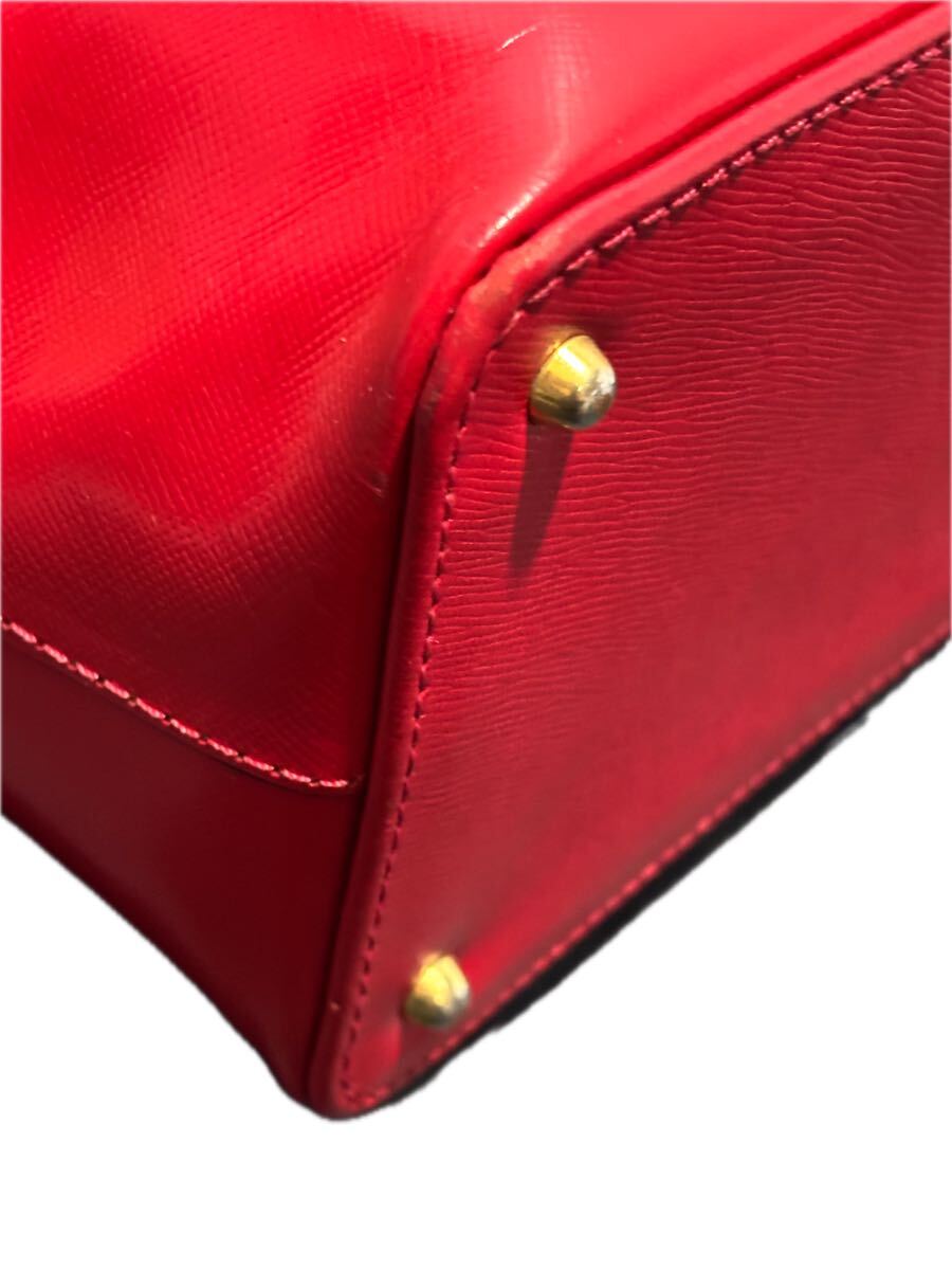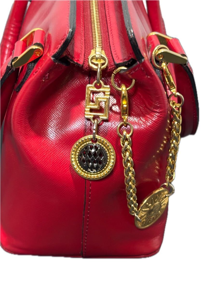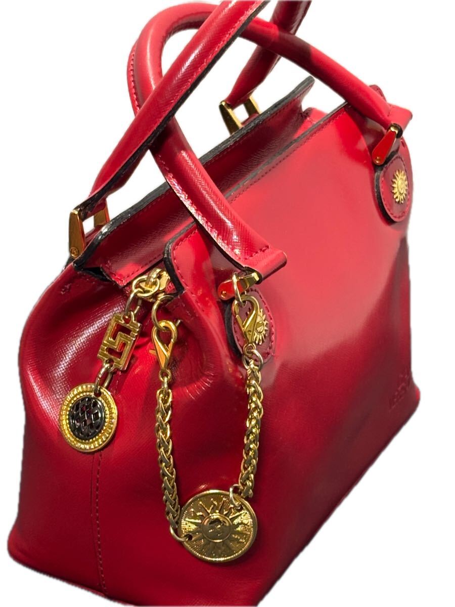 レザー赤 ゴールドチャーム付き ゴールド金具