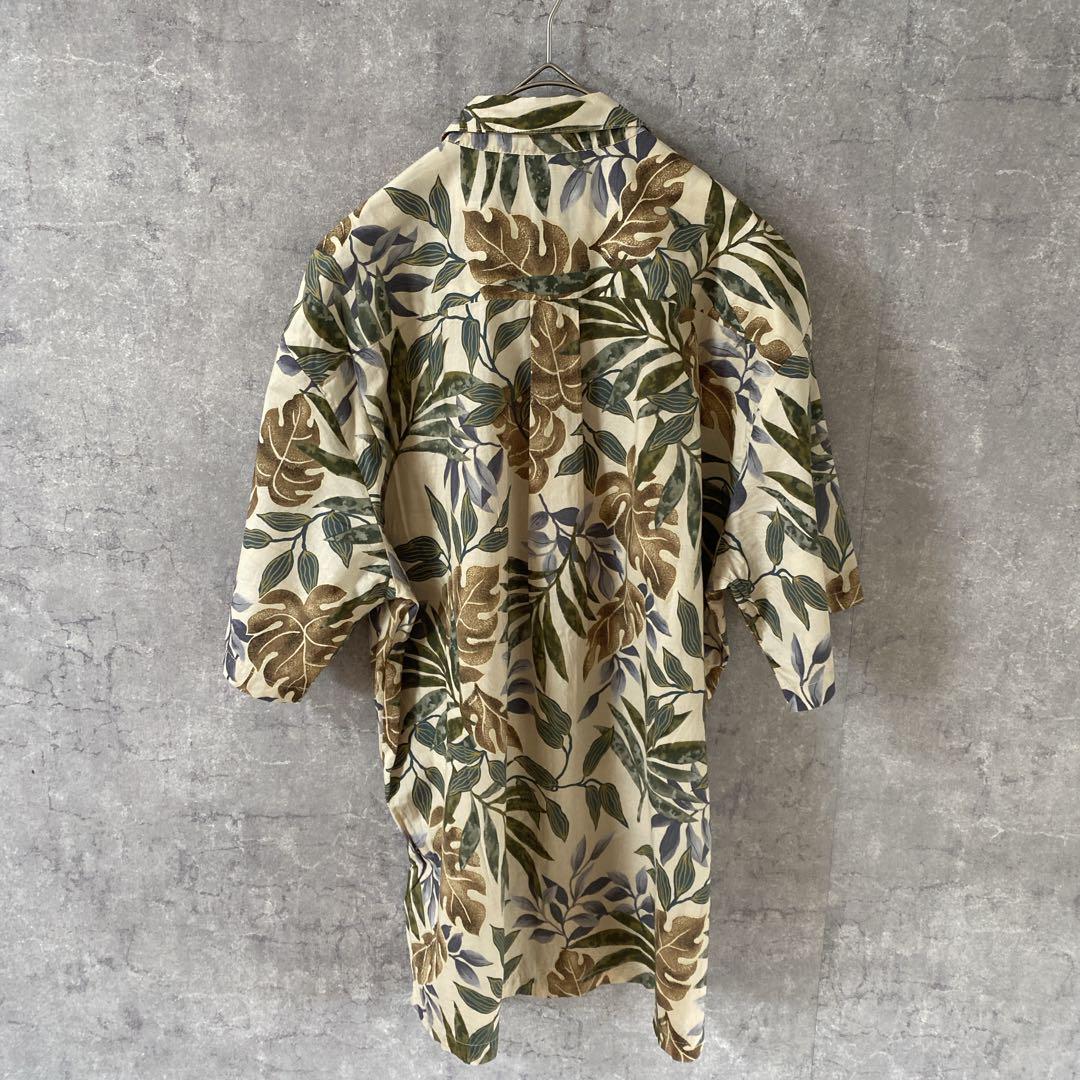 トリリチャードリーフ柄アロハシャツMサイズベージュ