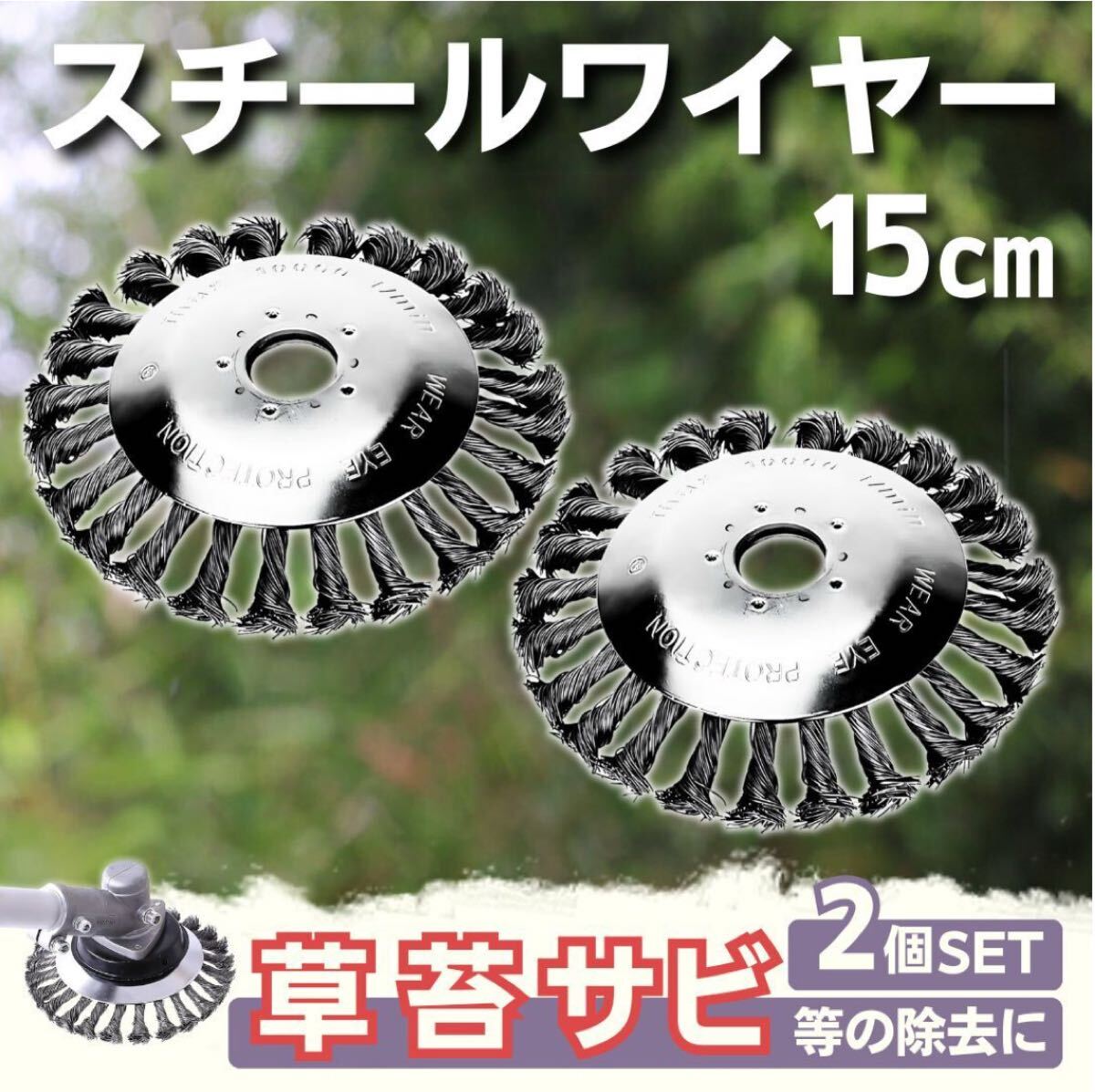 草刈機 刈払機 チップソー 6インチスチール ワイヤー セット ロング ブラシ 替刃 草刈り機 ブレード 充電式 電動2個セット