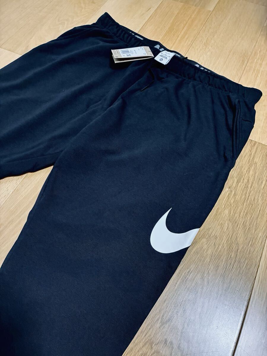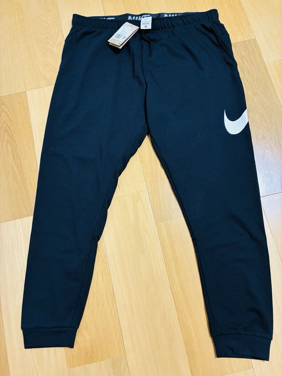 Nikeのロゴが特徴的なブラックジョガーパンツ、スタンダードフィットデザインで快適な着用感。