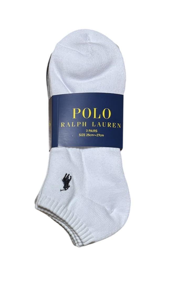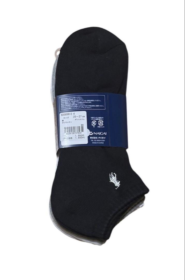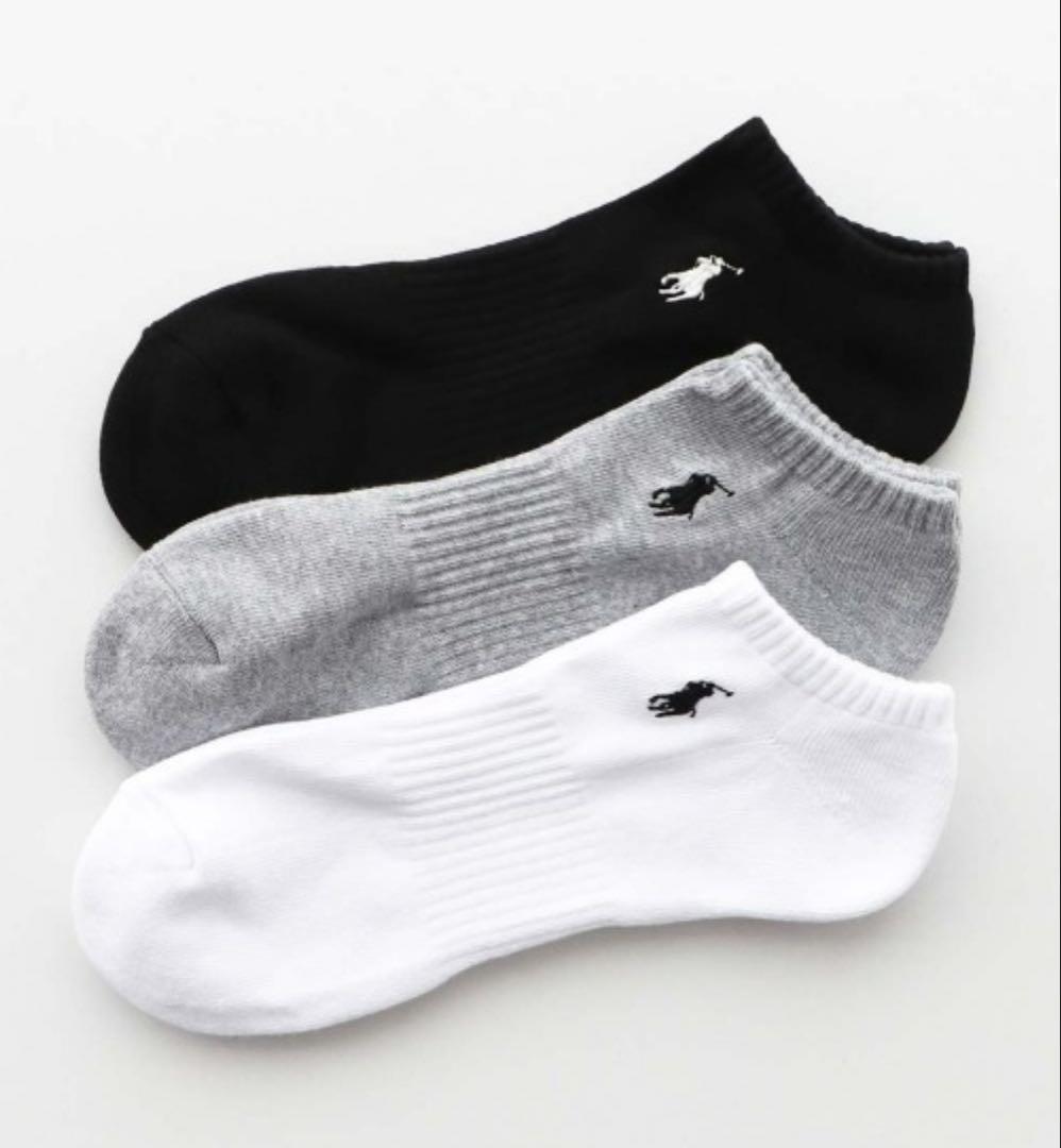 【新品未使用】ポロラルフローレン メンズ 靴下 スニーカー ソックス 3足組 白 黒 グレー 25〜27cm 送料無料