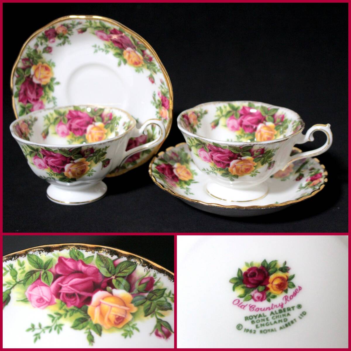 【ROYAL ALBERT/ロイヤルアルバート】『オールドカントリーローズ/ペアティーカップ&ソーサー』《中古品》イギリス/2客/廃盤//BVT4405