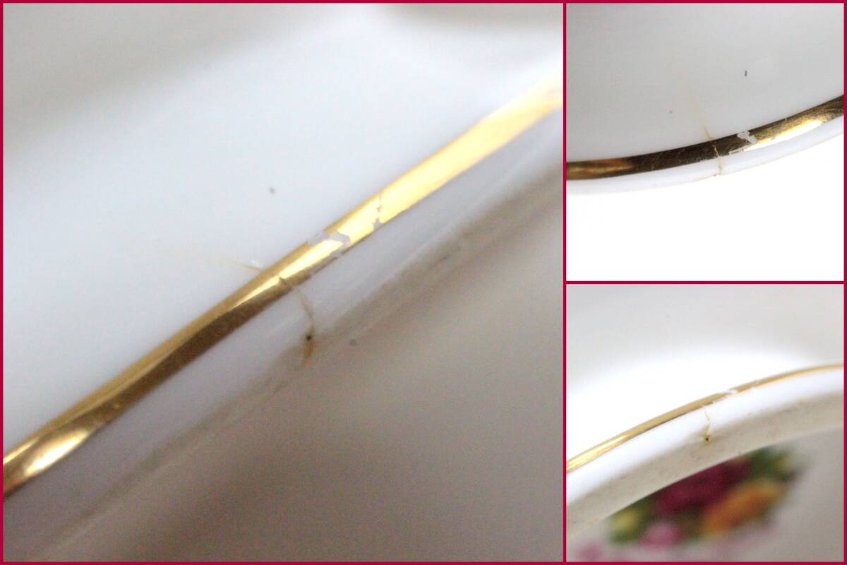 カップの口径金彩ラインハゲやハンドルの金彩コスレ、高台の金彩ラインハゲなど目立ちます。