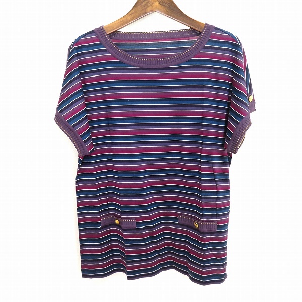 | 商品名 | #s レリアン Leilian 半袖 カットソー 9号 紫系 紺系 白 ボーダー 金釦 Tシャツ 綿 コットン 日本製 美品 948941 k01 |