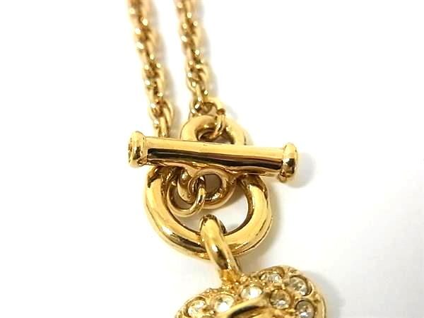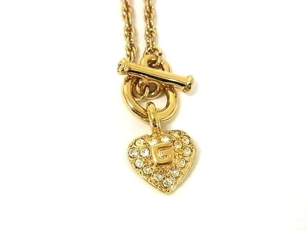 ■美品■ GIVENCHY ジバンシィ ヴィンテージ ラインストーン ハート ネックレス ペンダント アクセサリー ゴールド系 DI9009