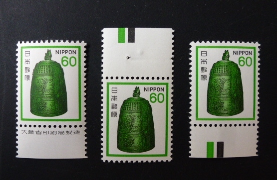 60円 平等院鐘 カラーマーク上と下と銘版 3枚組 完美品 未使用 A-232-5s