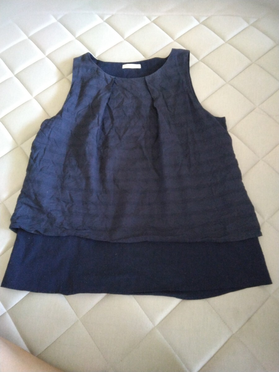 Quell chance ケルシャンス綿100%ネイビーブルー無地タンクトップ夏物レディース婦人服トップスMノースリーブ紺ブラウスカットソーボーダー