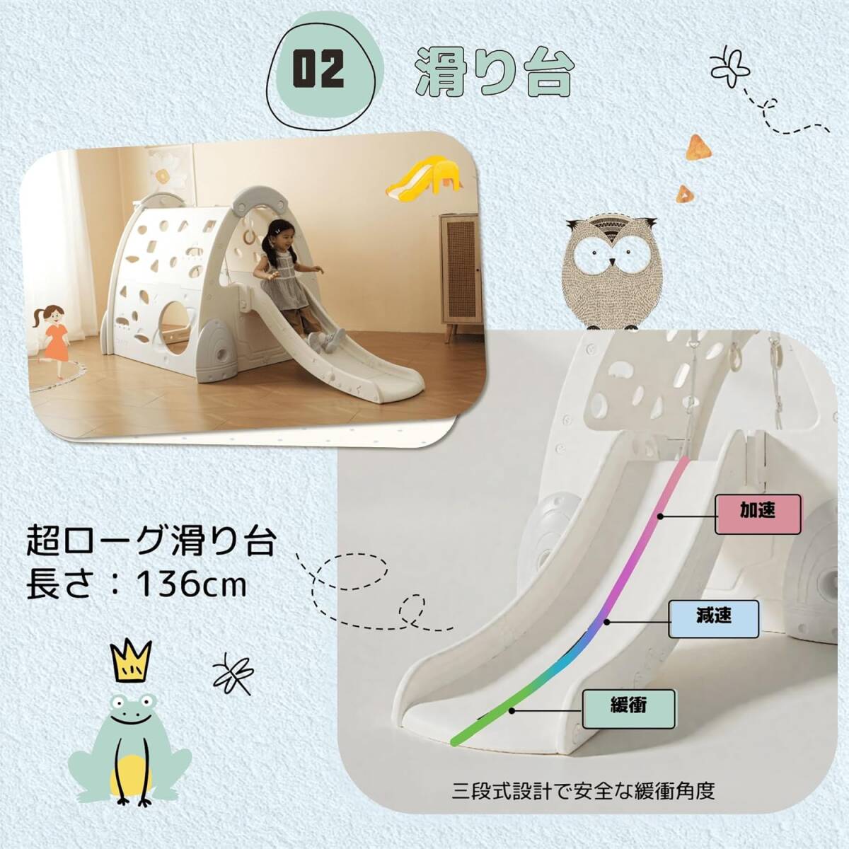 • 【滑り台】 三段式設計で安全な緩衝角度加速減速緩衝超ローグ滑り台:長さ:136cm【ブランコ】 子供が揺れることで、バランス感覚が養われます。