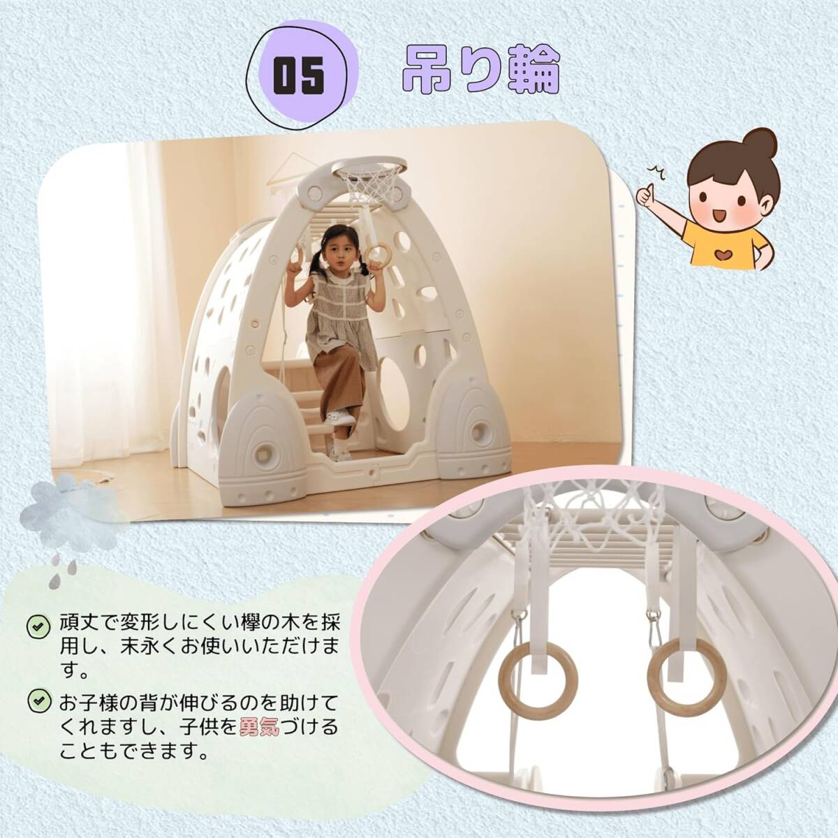 • 【吊り輪】頑丈で変形しにくい欅のきを採用し、末永くお使いいただけます。お子様の背が伸びるのを助けてくれますし、子供を勇気プけることもできます。