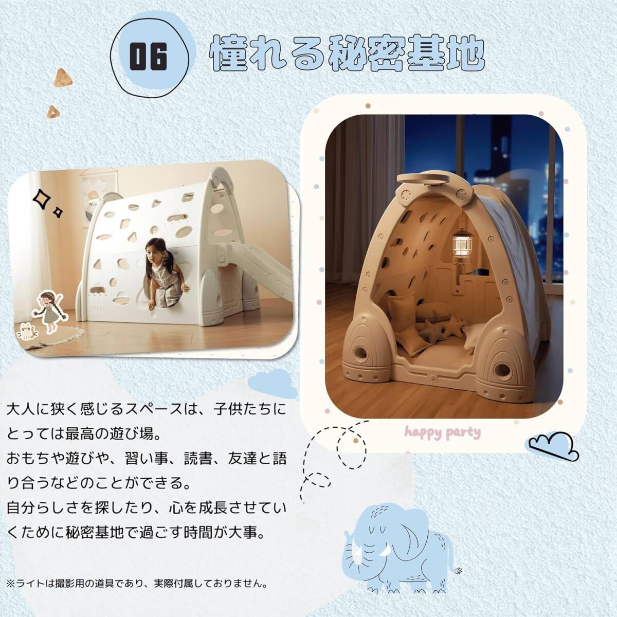 • 【 憧れる秘密基地】 大人に狭く感じるスペースは、子供たちにとっては最高の遊び場。おもちや遊びや、習い事、読書、友達と語り合うなどのことができる。自分らしさを探したり、心を成長させていくために秘密基地で過ごす時間が大事。※ライトは撮影用の道具であり、実際付属しておりません。