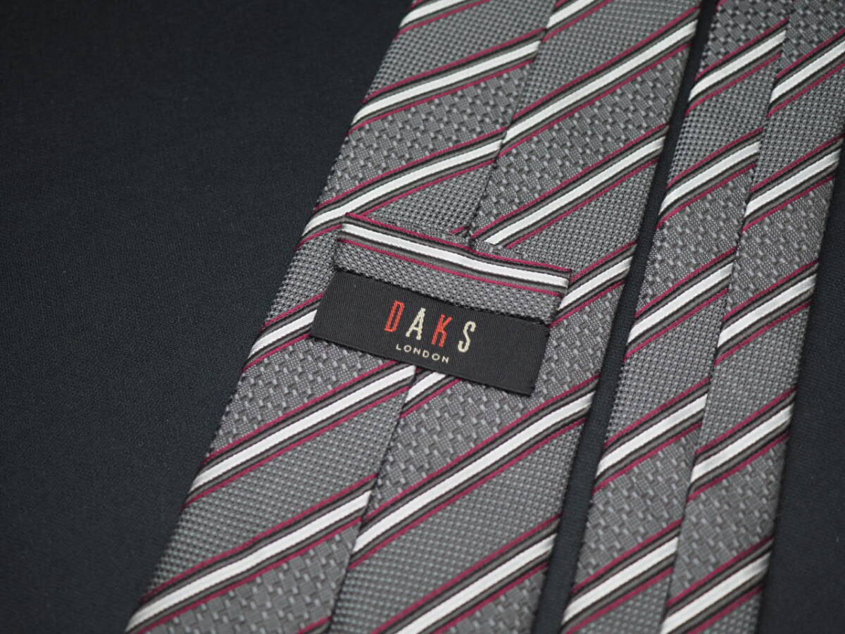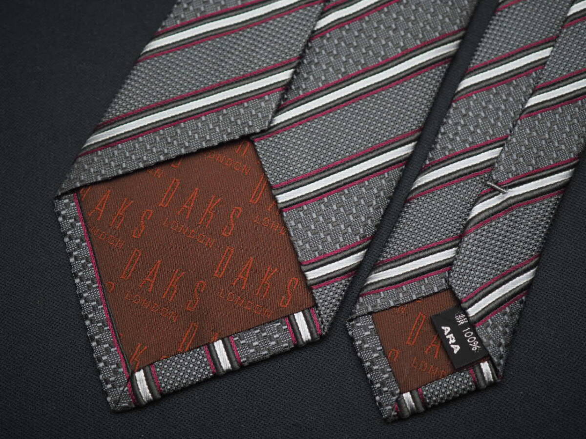 美品【DAKS ダックス】 F1517 グレー系 SILK ブランド ネクタイ 古着 良品