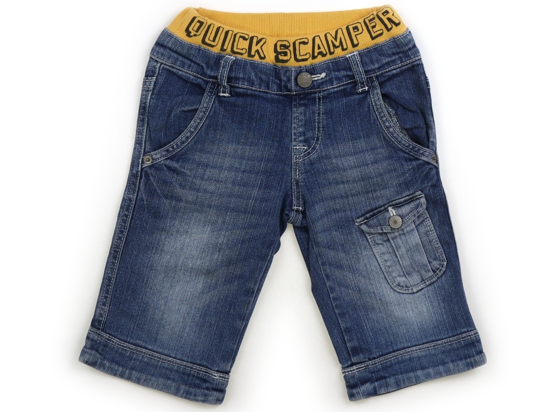 デニム地で、ウエストは総ゴムです。色褪せが目立ちます。