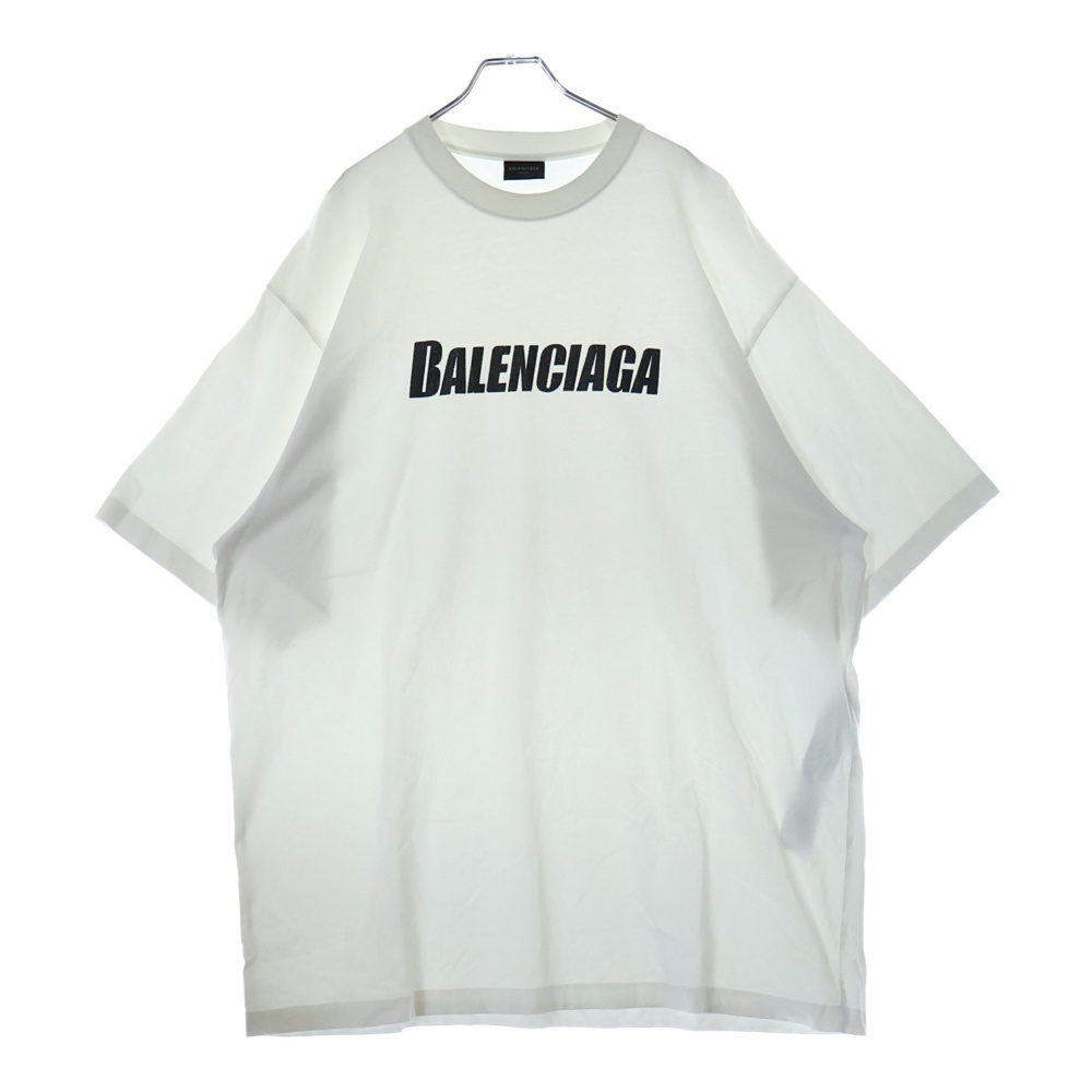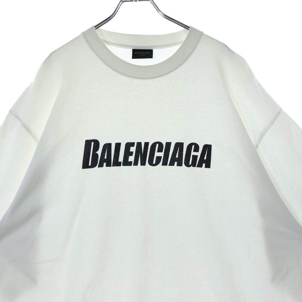 バレンシアガ 21SS Caps Destroyed Flatground デストロイ加工 フロントロゴプリント クルーネック半袖Tシャツ KT93 651795TNVL19040