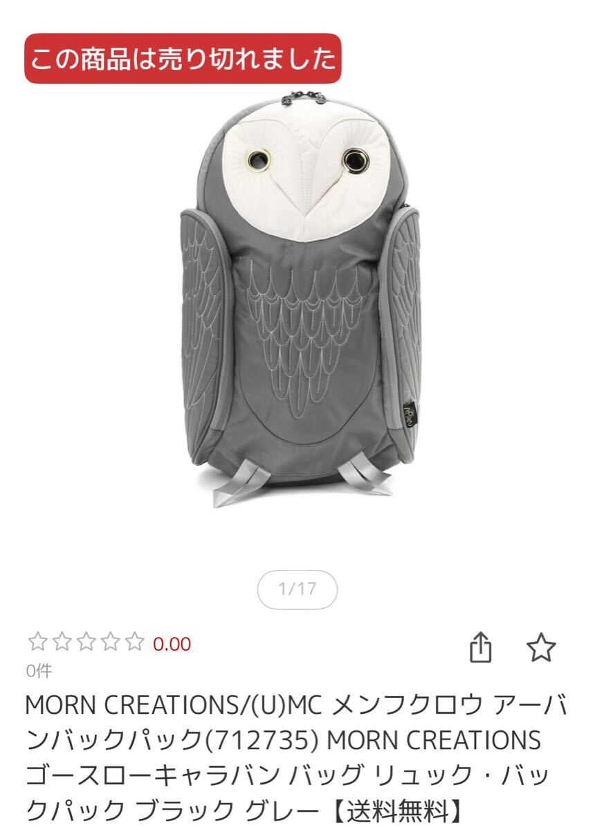 商品名 : 希少!MORN CREATION メンフクロウ(梟)アーバンバッグパック(リュックサック)