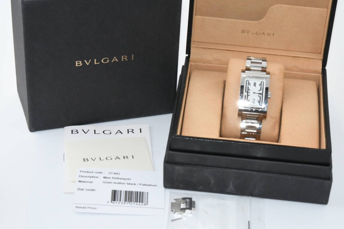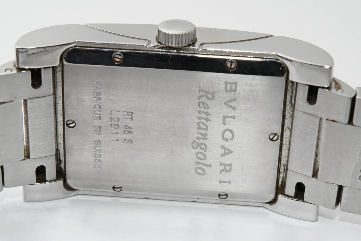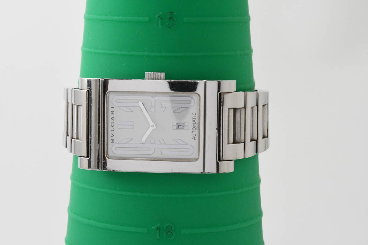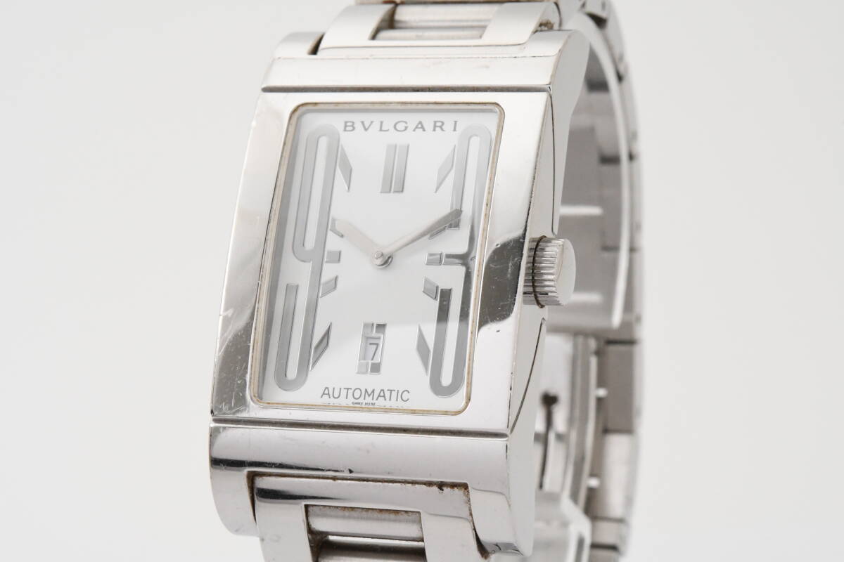 【希少品】ブルガリ レッタンゴロ オートマチック RT45S BVLGARI Rettangolo デイト 自動巻 シルバー メンズ 腕時計+箱 0814-19