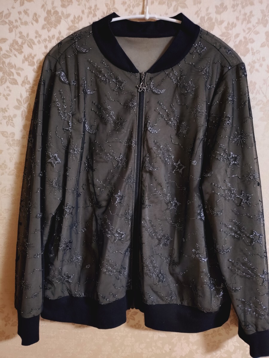 黒 星座柄 超美品レリアン13+Leilian 軽やかトップス完売 プラスサイズ15+17+ 処分価格大きいサイズ定価¥45,000ほど