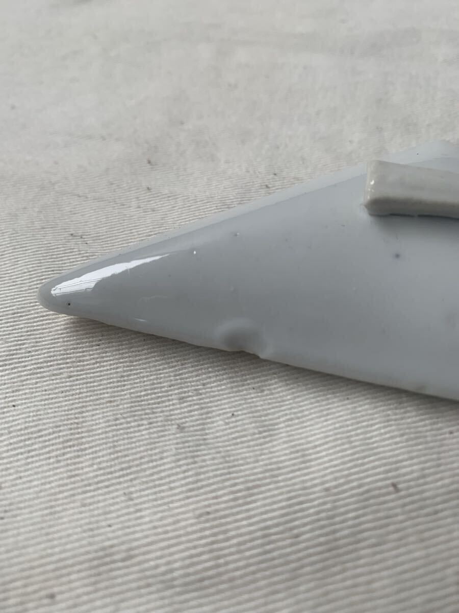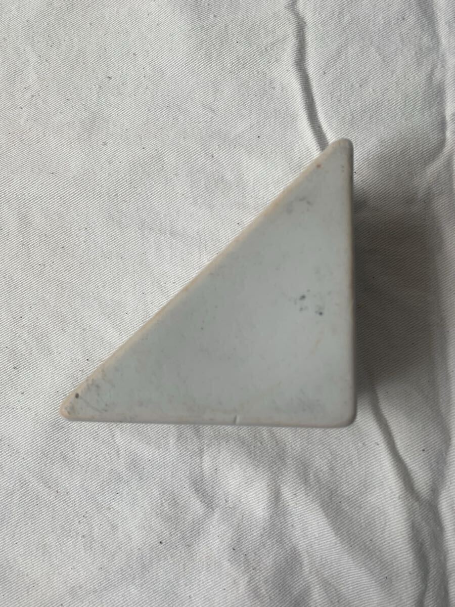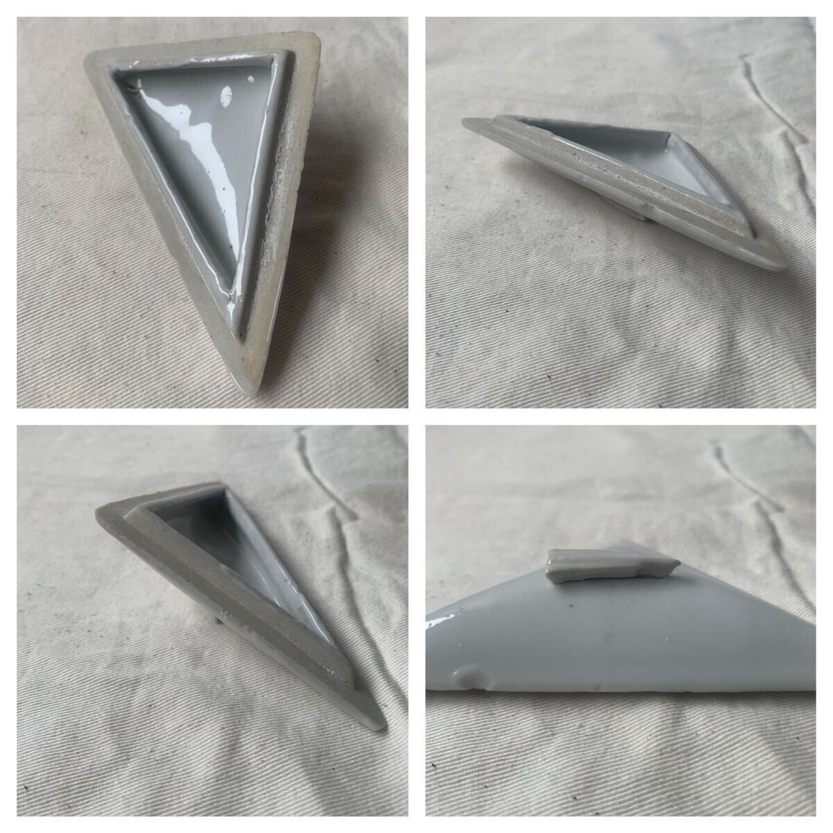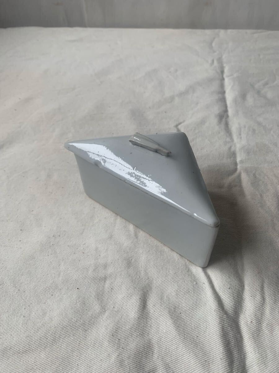 デザインが素敵な蓋付三角形白磁ケースです。小物やアクセサリーなどを飾るお部屋のインテリアやお店のディスプレイ、イベント出店時の什器などに使って頂いても素敵だと思います。