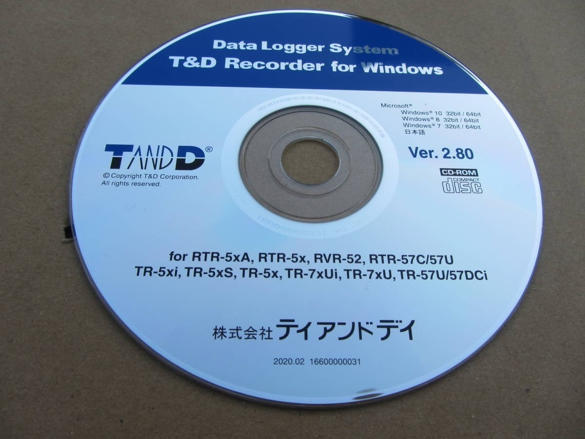 ■ T&D データロガーシステムソフト T&D Recorder for Windows CD-ROM Ver.2.80です。
