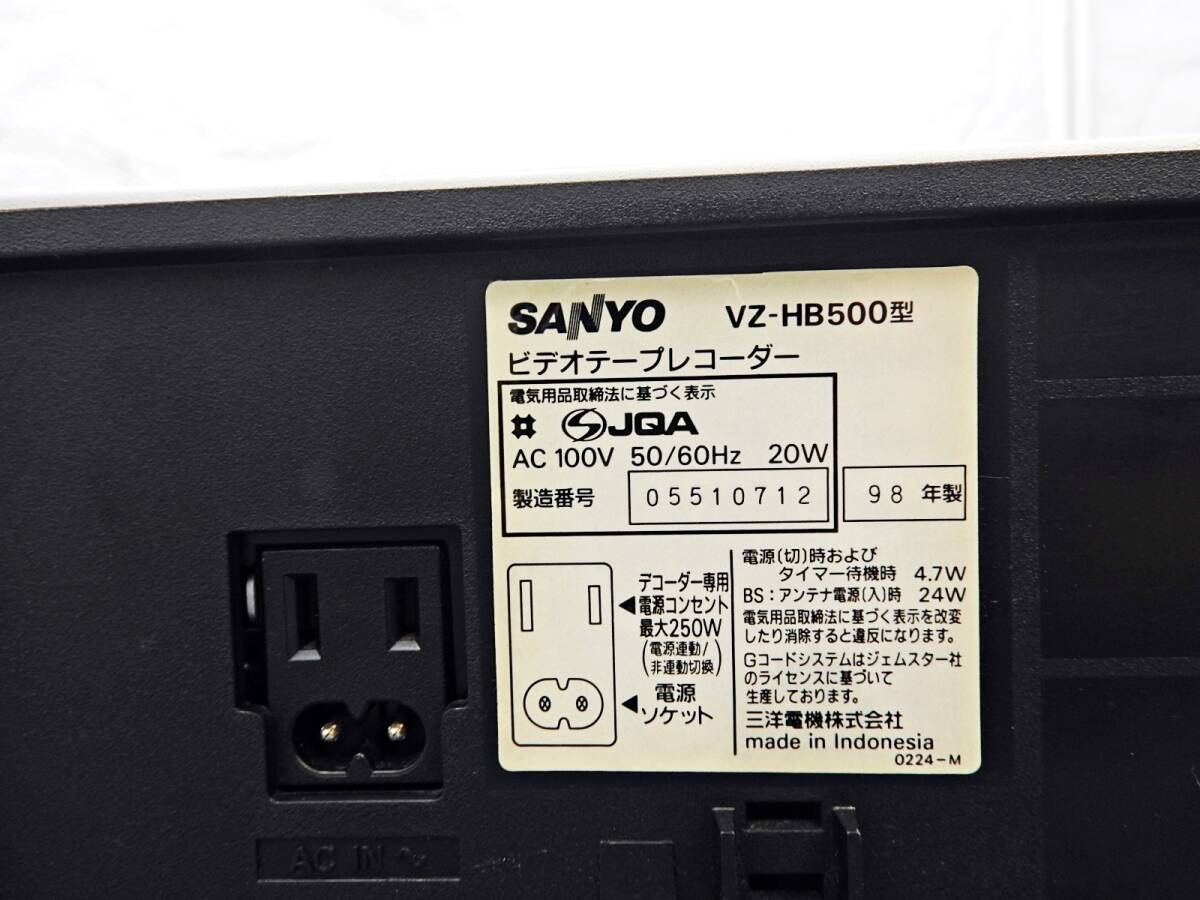 SANYO 三洋電機■VHS ビデオテープレコーダー VZ-HB500 ビデオデッキ リモコン付き 視聴確認済み■ジャンク品「管理№KT367」