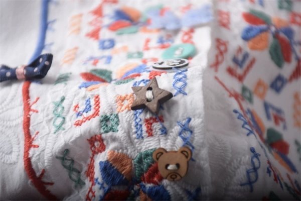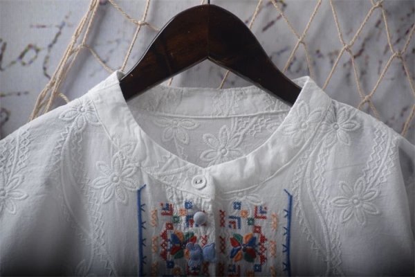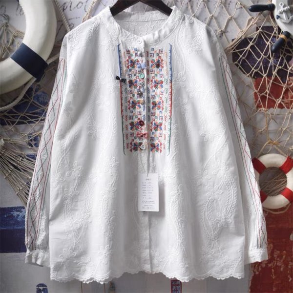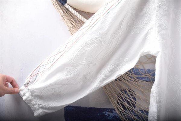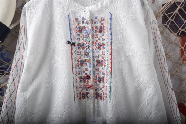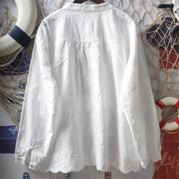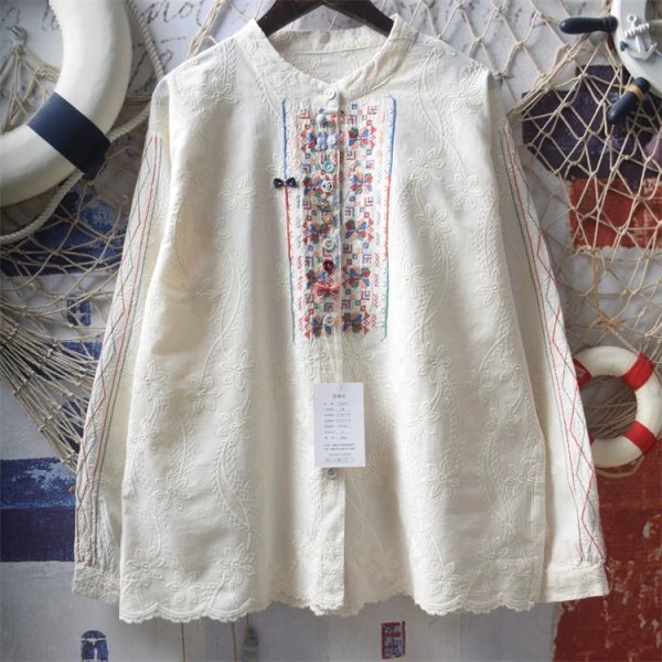 rm 2508 ブラウス フリーサイズ ワイシャツ チュニック トップス 綿100% 大人可愛 ナチュラル サラサラ 通気性肌触り抜群 刺花柄 長袖1