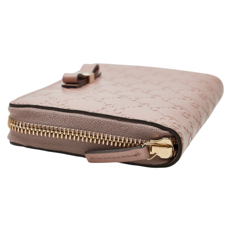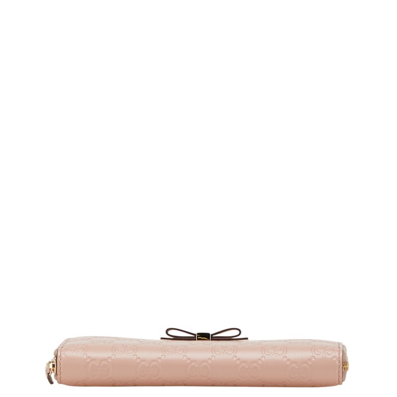 グッチ グッチシマ リボン モチーフ 長財布 ラウンドファスナー 388680 ピンク レザー レディース GUCCI 【中古】