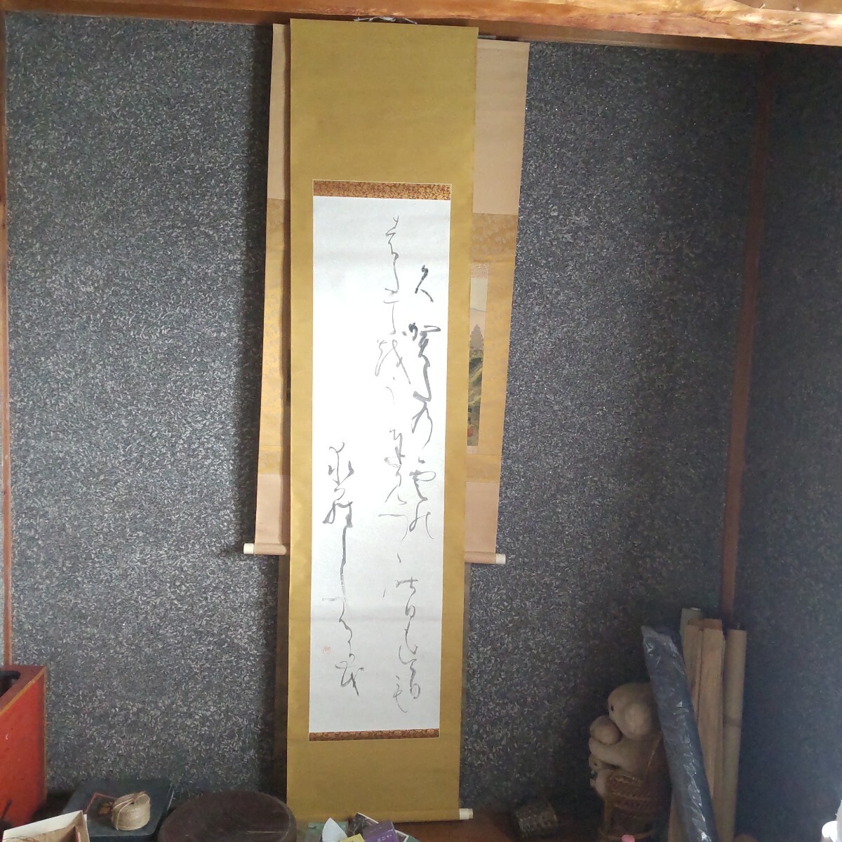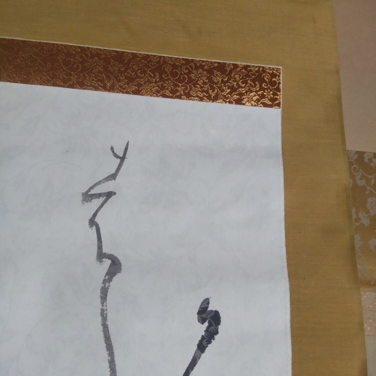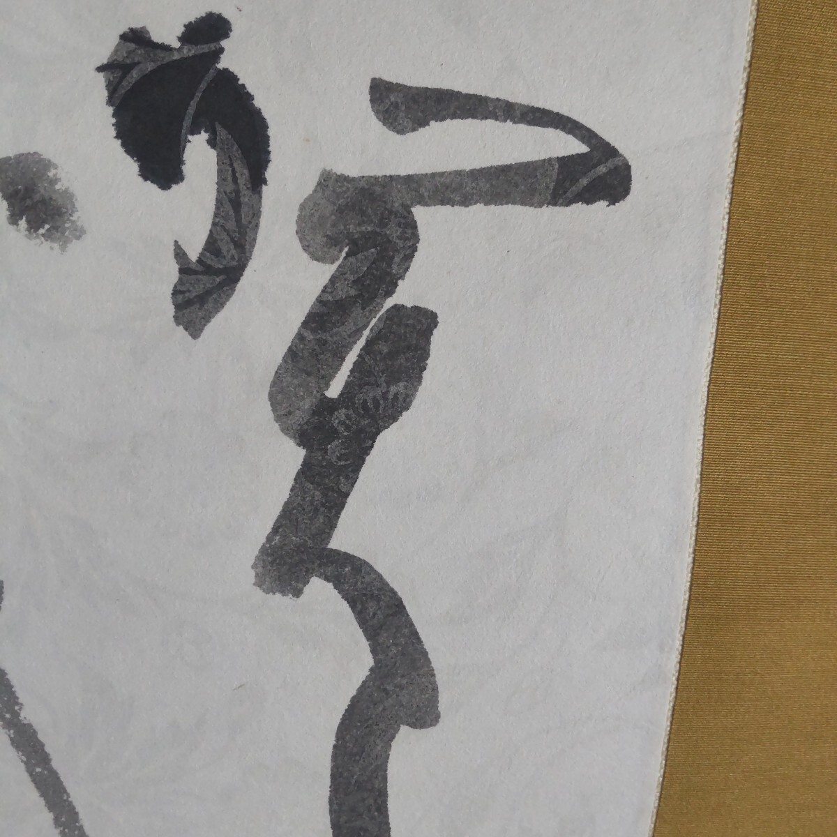 古い物ですがとてもきれいな状態です。紙の模様が文字の墨から、透けて見えるとても素敵な文字になっています(写真6)。直筆銘印有り。装丁も、文字と同柄に成ります。凝った造りになっています。残念ながら箱無しです。当方知識が有りません。お好きな方インテリアに。約190cm。裏に鉛筆で、山口幾久世と有ります。作者の名前と成ります。