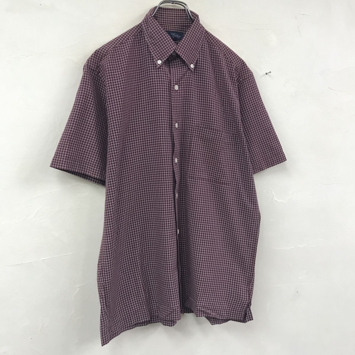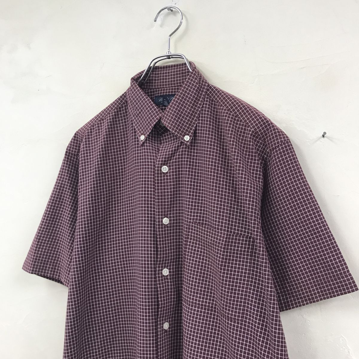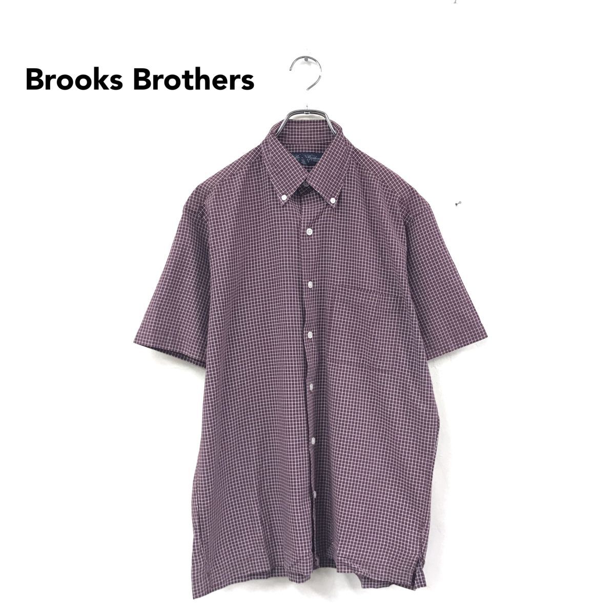 2H1886-T◆Brooks Brothers ブルックスブラザーズ 半袖シャツ チェック 胸ポケット◆sizeS レッド メンズ トップス コットン100