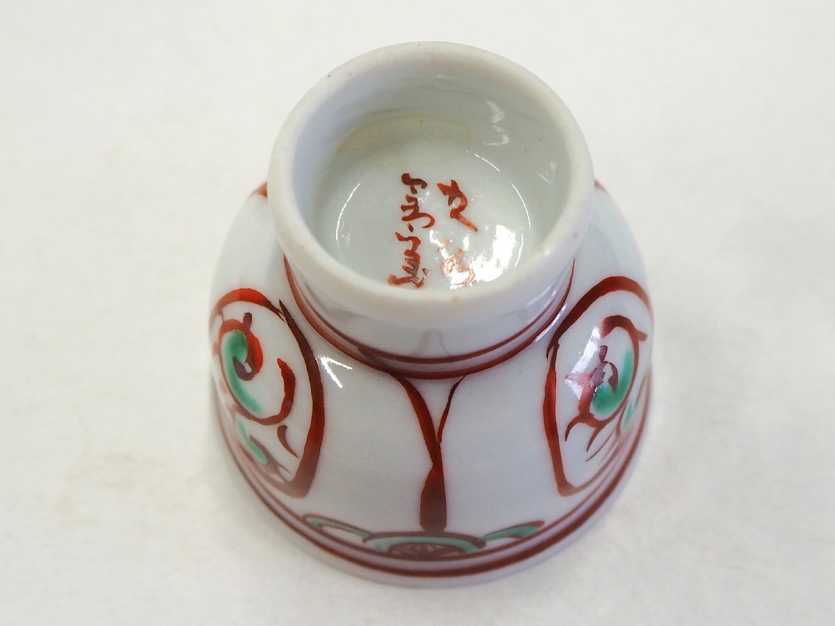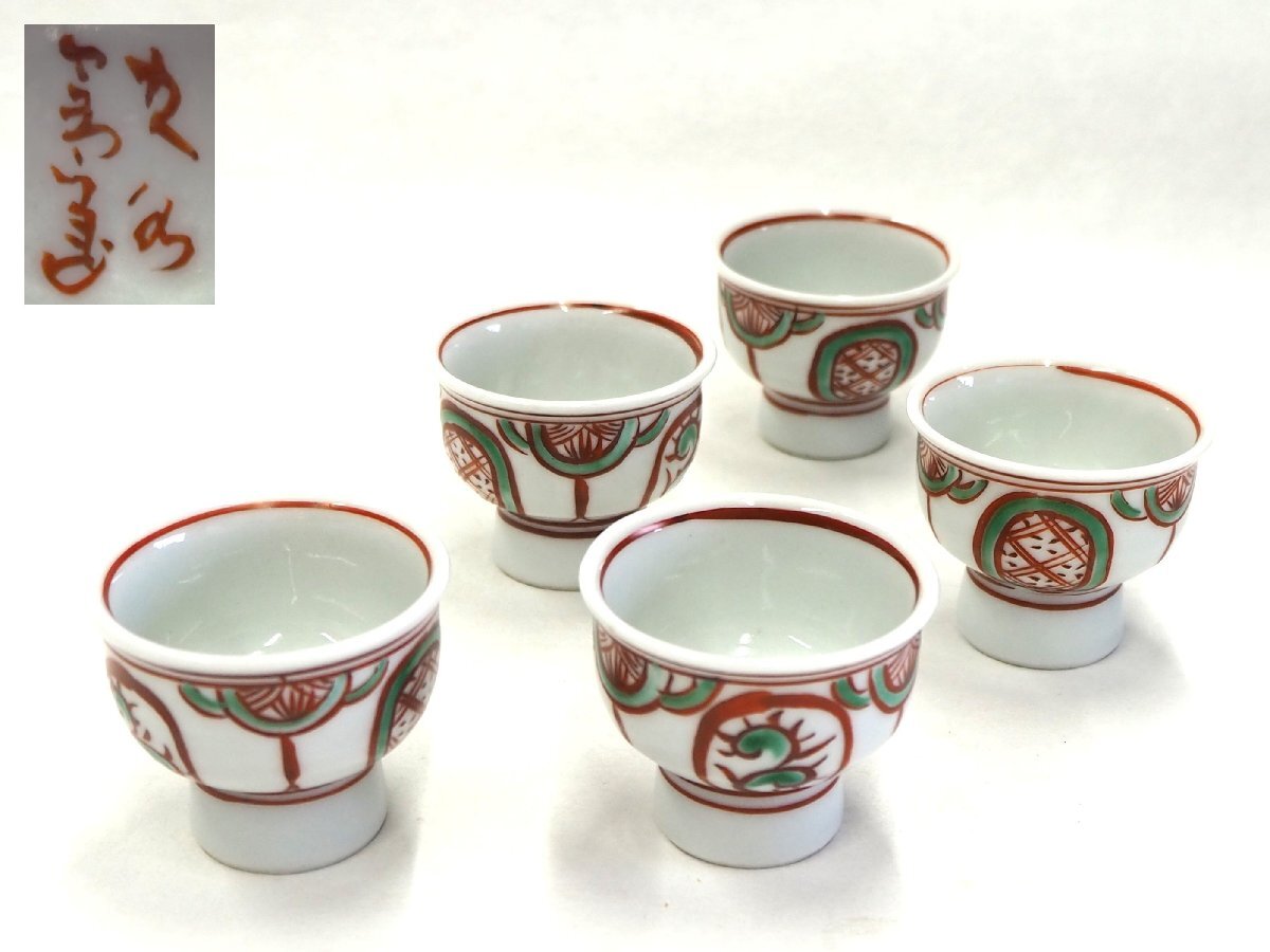 ★☆【 赤絵 酒盃 5客セット 底に在銘 径4.8×高4cm 】酒器 酒盃 日本酒 お猪口 ☆★