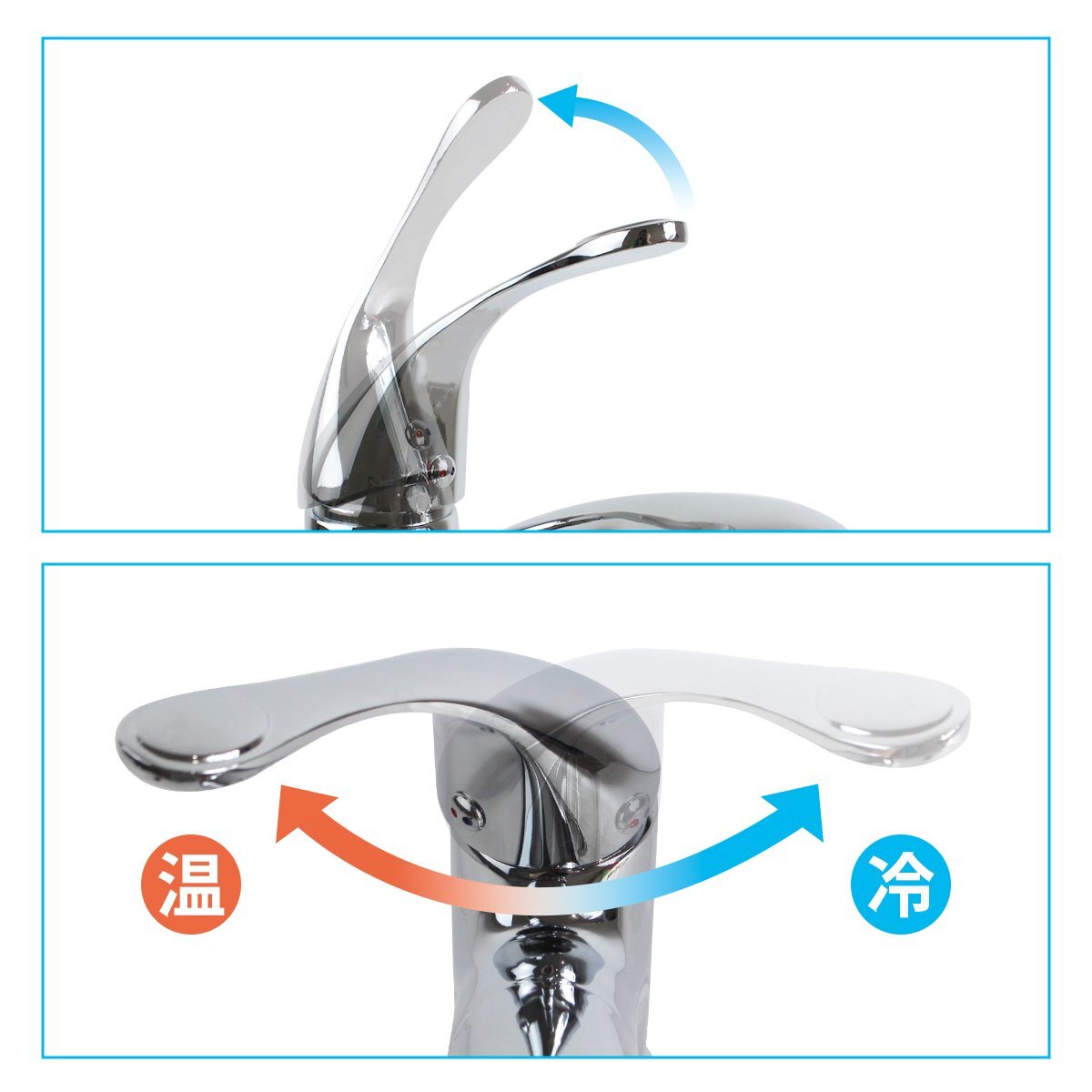 ●冷熱混合栓(湯水混合)、シングルレバーで簡単に冷温切り替えができます。