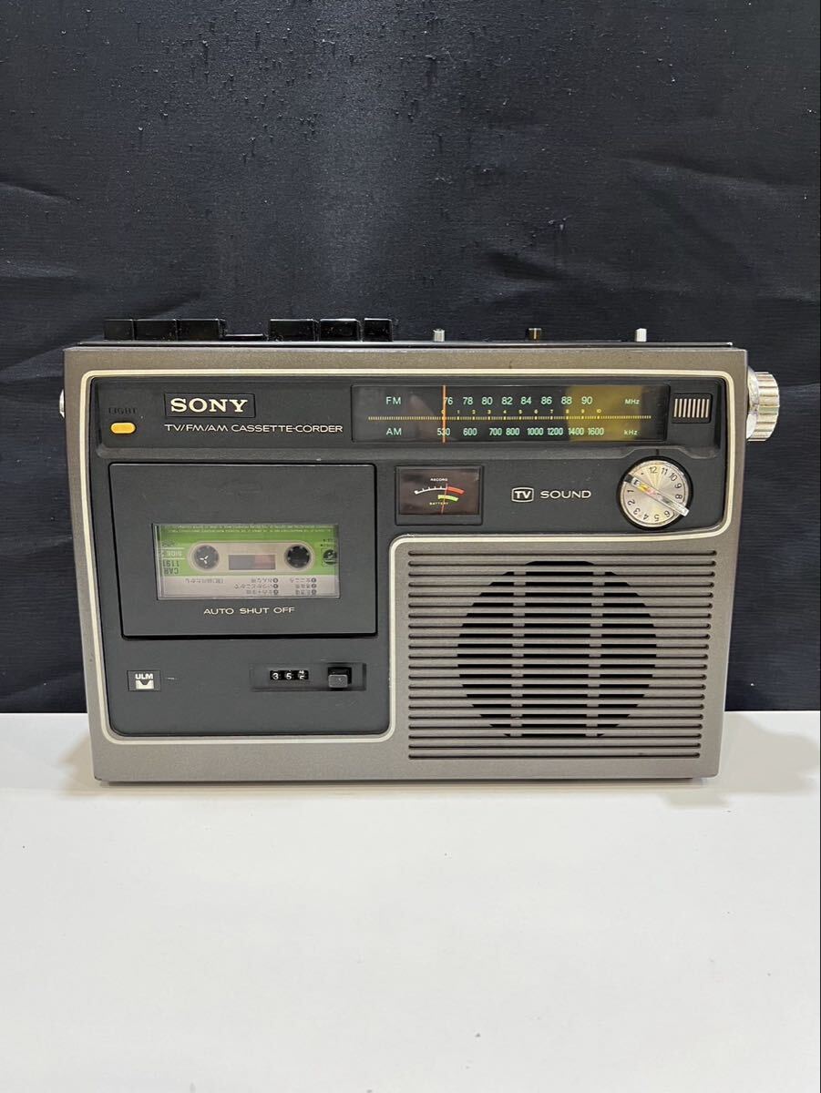 9 【1977年製】SONY ソニー ラジオカセットコーダー 10cmコーン型 昭和レトロ 専用コード欠品CF-1950