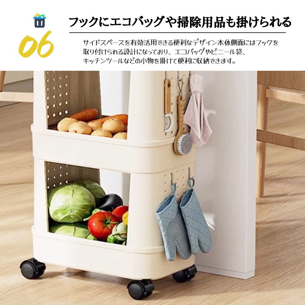 フック付きデザイン:側面にはフックがあり、キッチンツールや掃除用ブラシを掛けられて便利です。