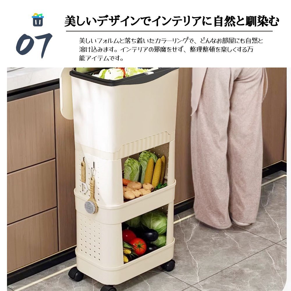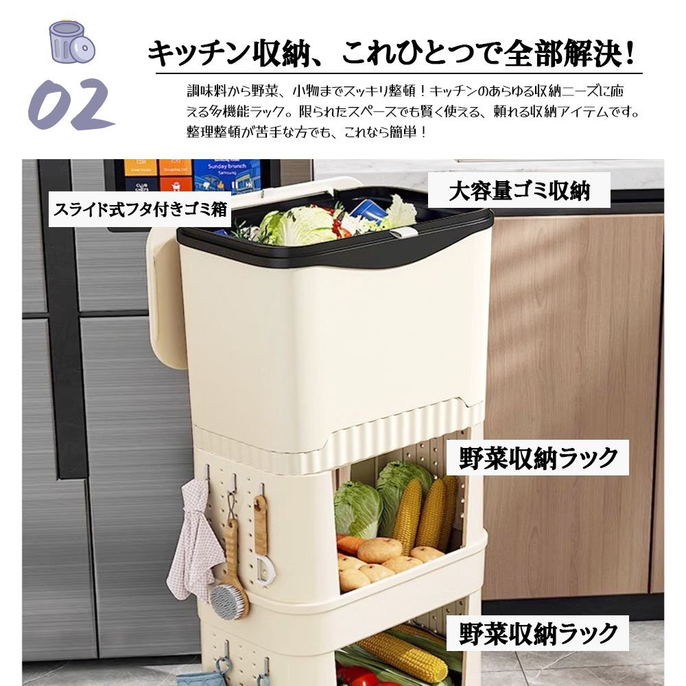 ゴミ箱 多機能 ふた付き キャスター付き 縦型 大容量 キッチンワゴン 小物入れ 省スペース スリム キッチン 洗面所 リビング 新生活 収納
