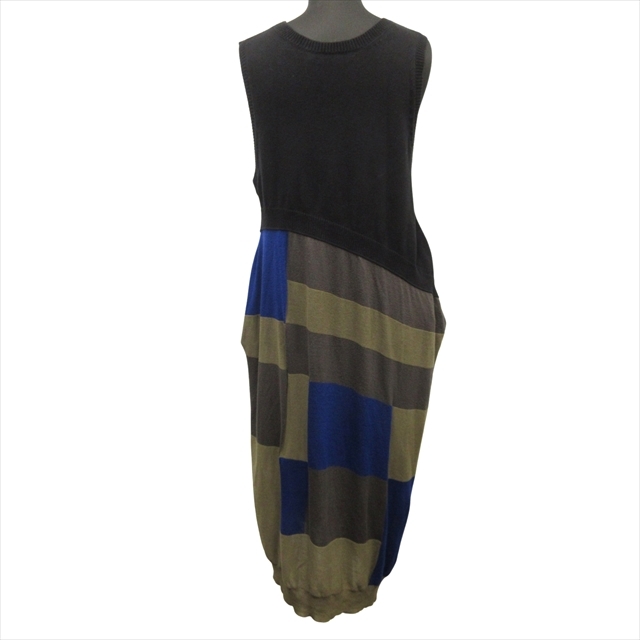 18ss ワイズ Y's アシンメトリー パッチワーク ニット ワンピース セーター ドレス ロング ヨウジヤマモト 2 マルチカラー レディース