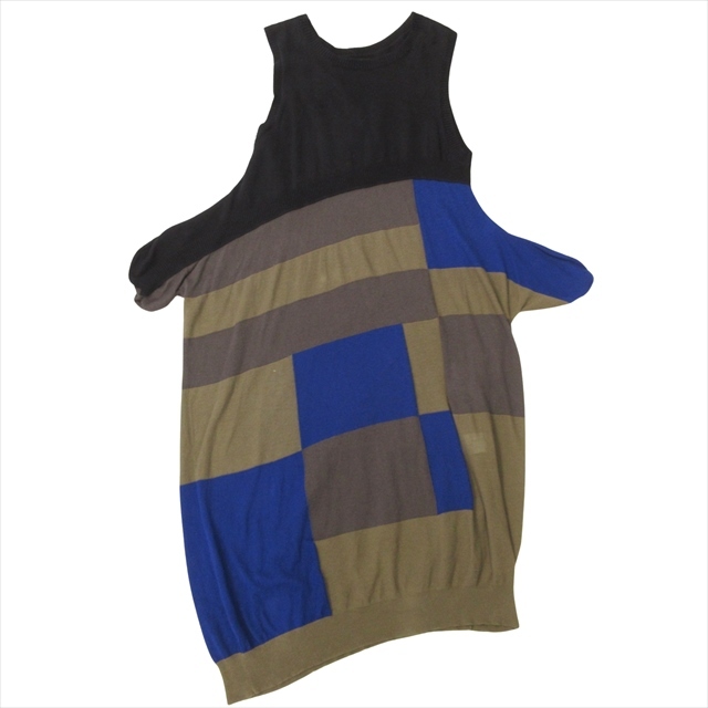 【仕様】品番:YW-K06-082 アシンメトリーデザインのニットワンピース。下部はスクエアのパッチワーク仕様