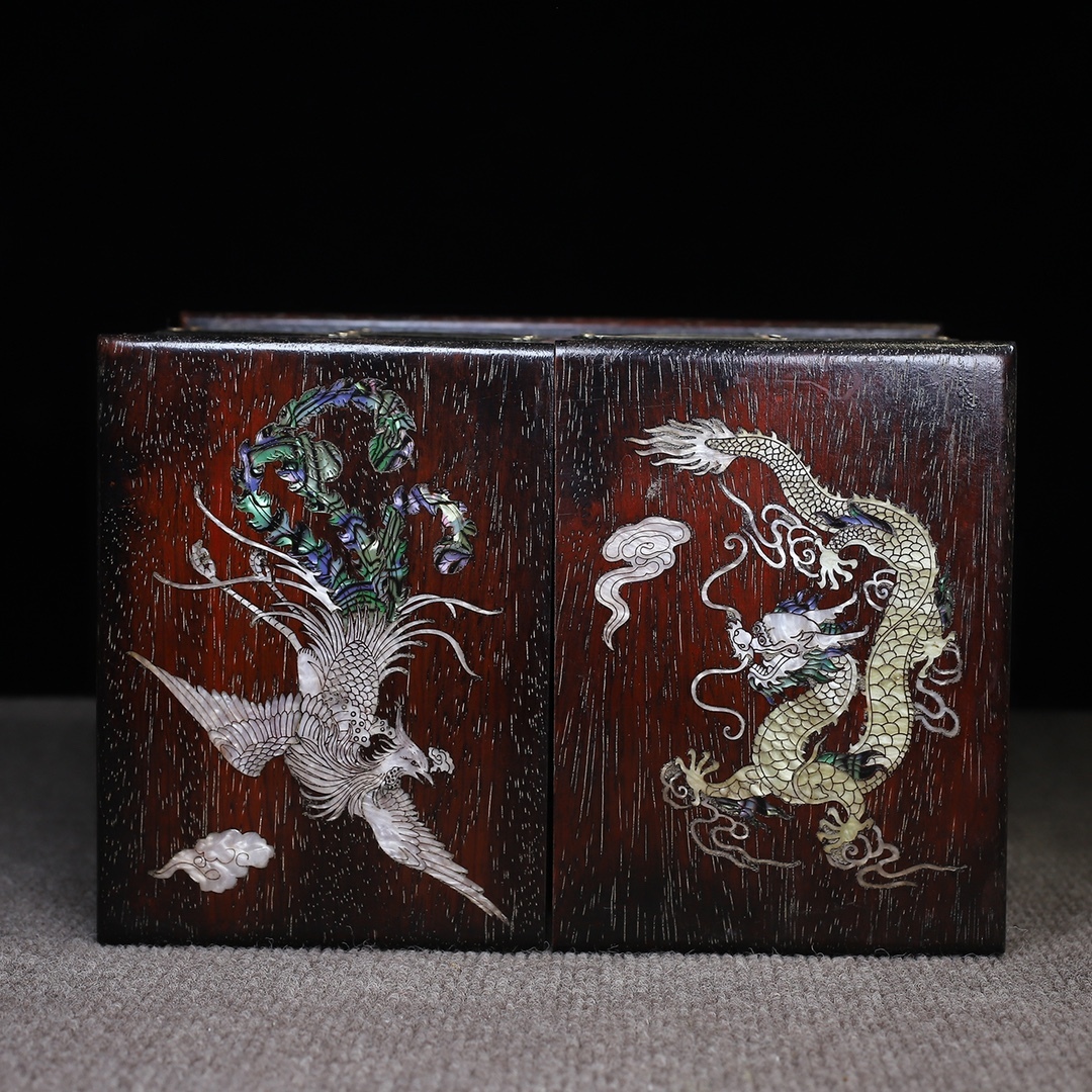 *珍品旧蔵* 清 紫檀木 はめ込む貝殼 伸拉收縮多寶盒 木製 極細工 中国古玩 骨董品 古美味 H48