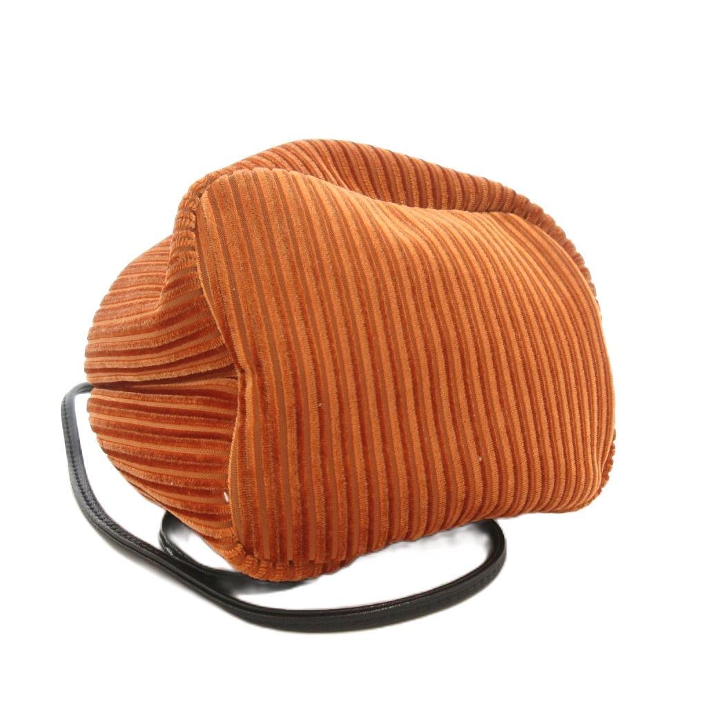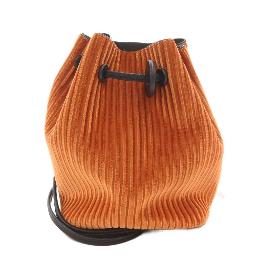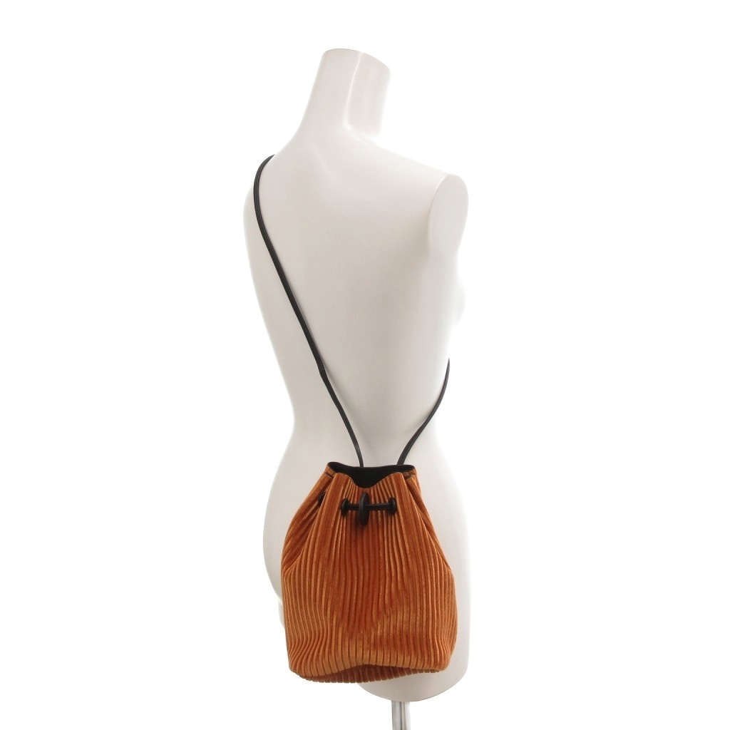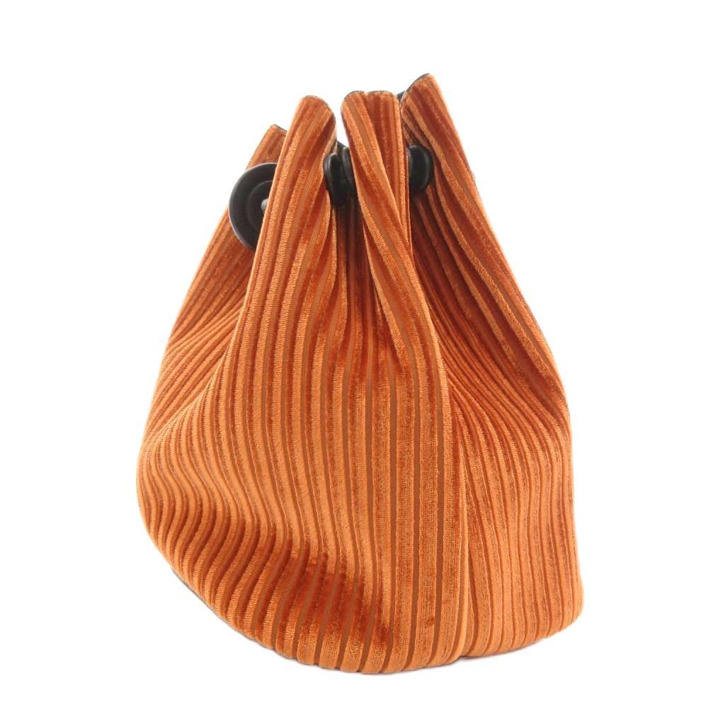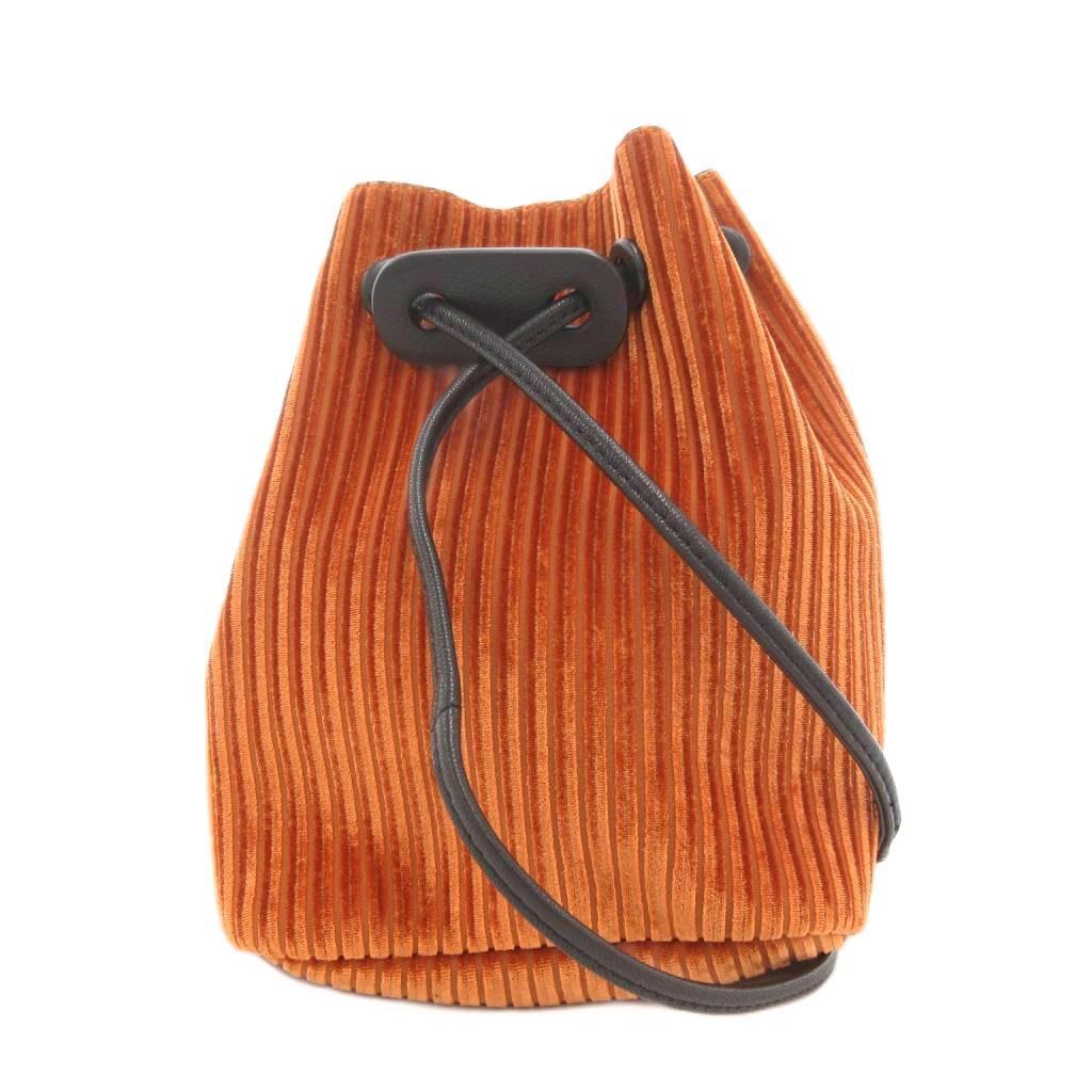 ハシバミ HASHIBAMI 巾着 ショルダーバッグ ストライプ ベロア調 オレンジ /FT ■SH レディース