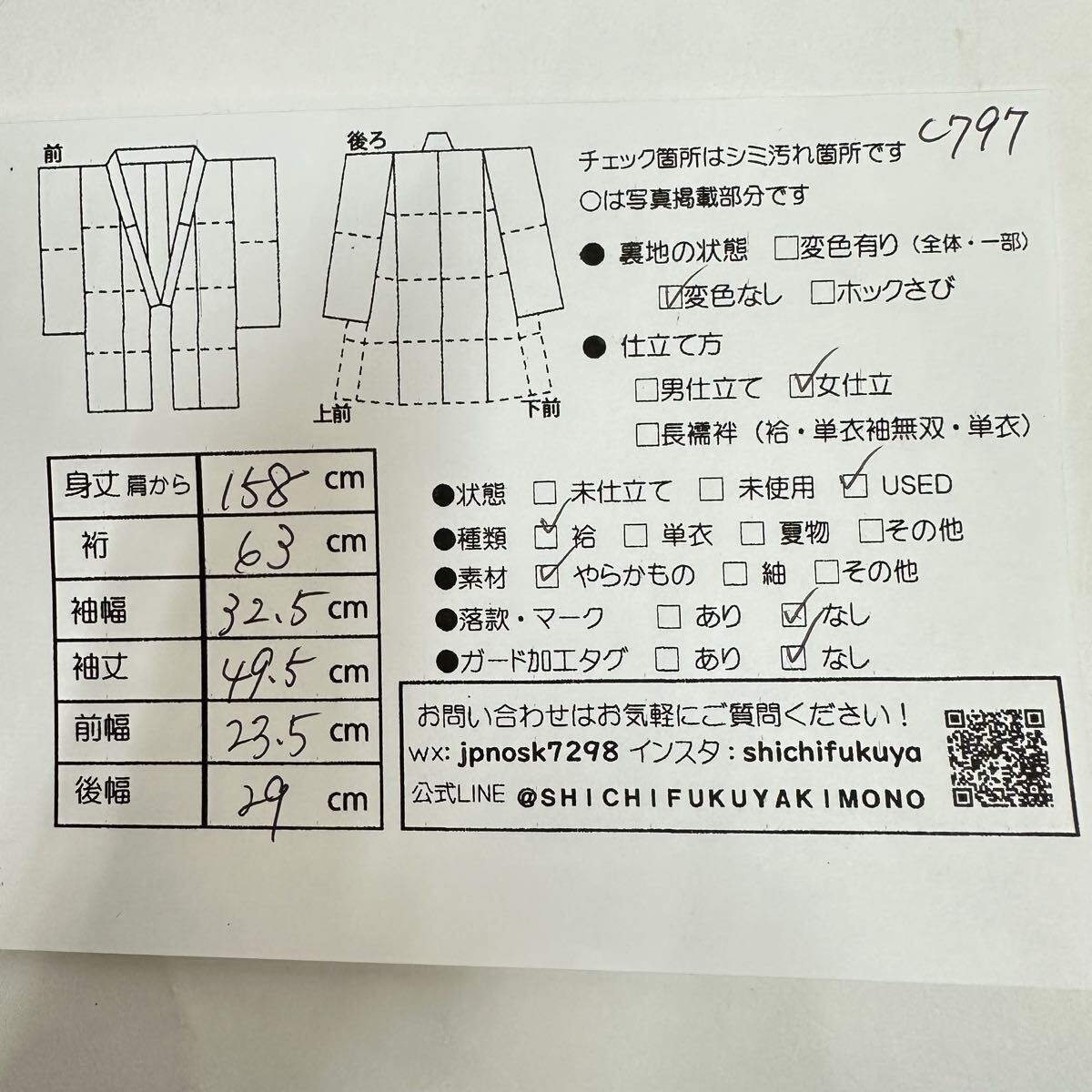 【七福】c797 正絹 小紋 地模様 織花 暗文 地文起こし 袷 着物 仕立て上がり 逸品 身丈 約158cm 裄 約63cm