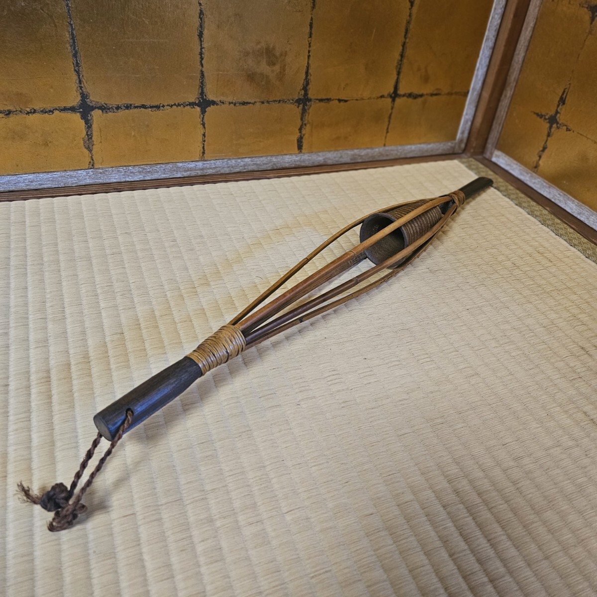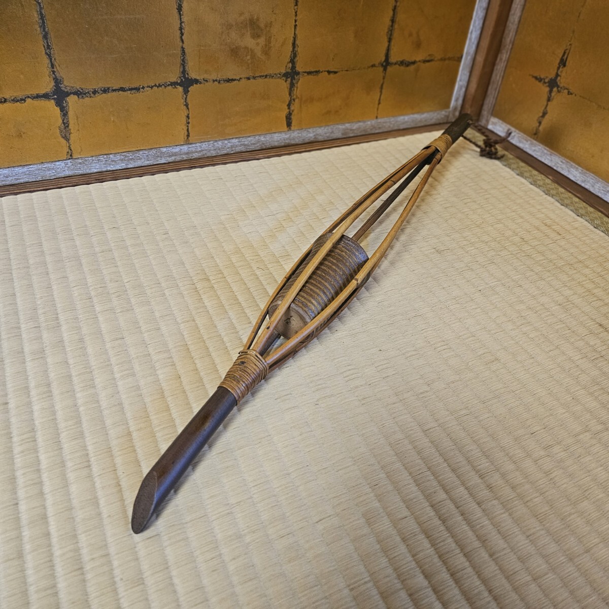 | 商品説明 | アクセスいただきありがとうございます。 説明文、自己紹介欄を全てお読みいただき納得されたうえで、ご入札お願いいたします。 発送など業務のストップに関するお知らせは自己紹介欄にアップいたします。 特にお急ぎの方はご注意下さい。 なお、画像にあるものが全てです。 竹のフレームの中に 陶器製の筒が入ってます。 陶器底に但馬の刻印あり。 全長610㎜ あとは画像参照。 呉服屋さんをされていたお宅の片付け品です。 倉庫保管品です。 |
