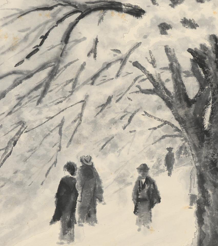 また、翌22年にはフランスに留学、帰国後は水墨画に移行して画風を確立、院展などで活躍したが36年に院展を脱会した後は個展中心の制作となり戦後の49年より石井鶴三らと「墨心会」を結成、晩年は再び画壇に戻り54年に日展に出品、59年に会員となっている。